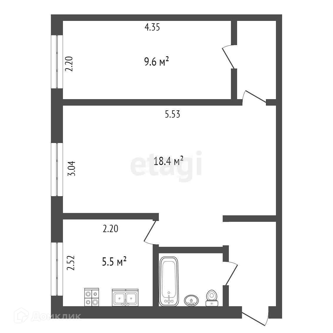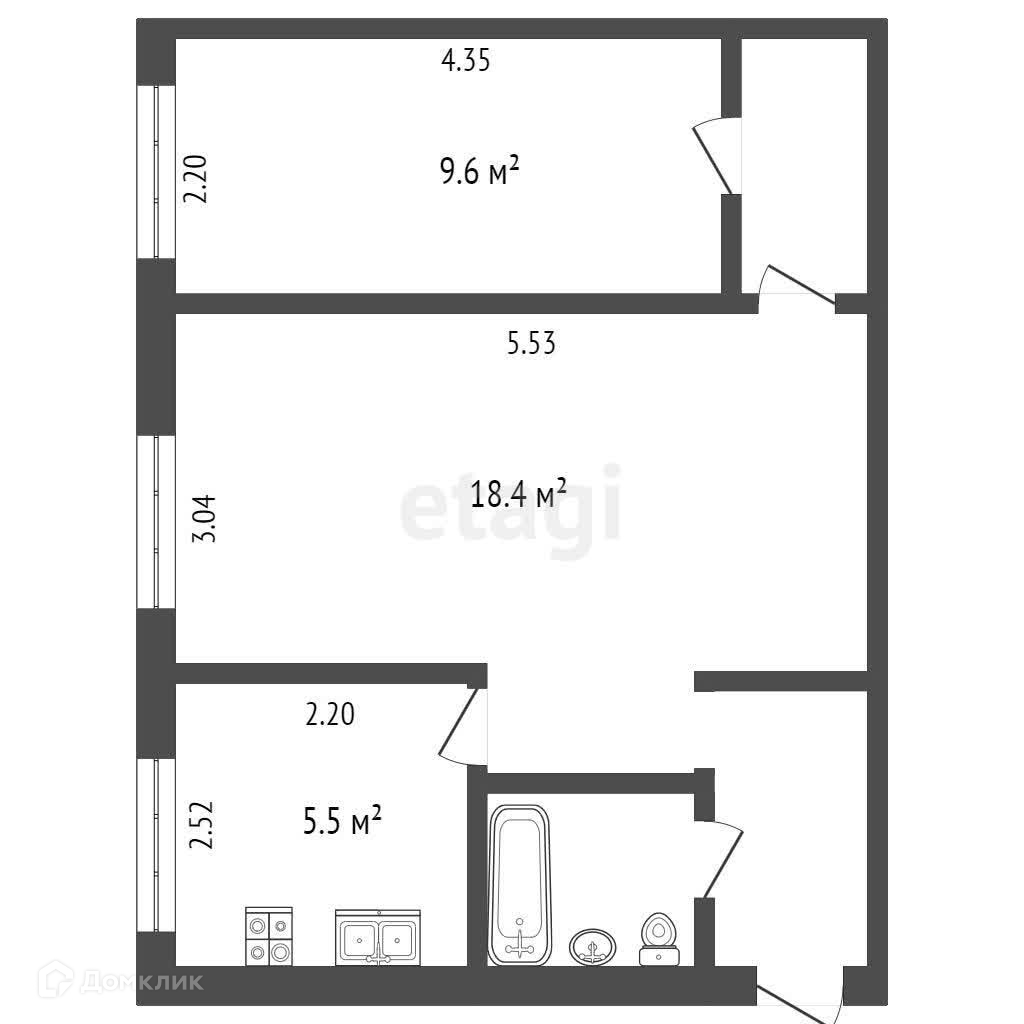 Общая площадь 41.8 м2