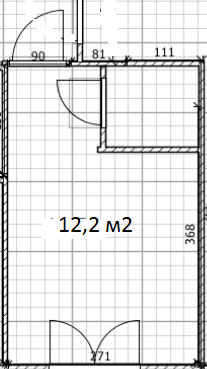 Студия 12,2м2 находится на первом этаже, потолки 2,64 метра, окно в деревянной раме, выходит во двор, по полу паркет, на стенах старые обои.