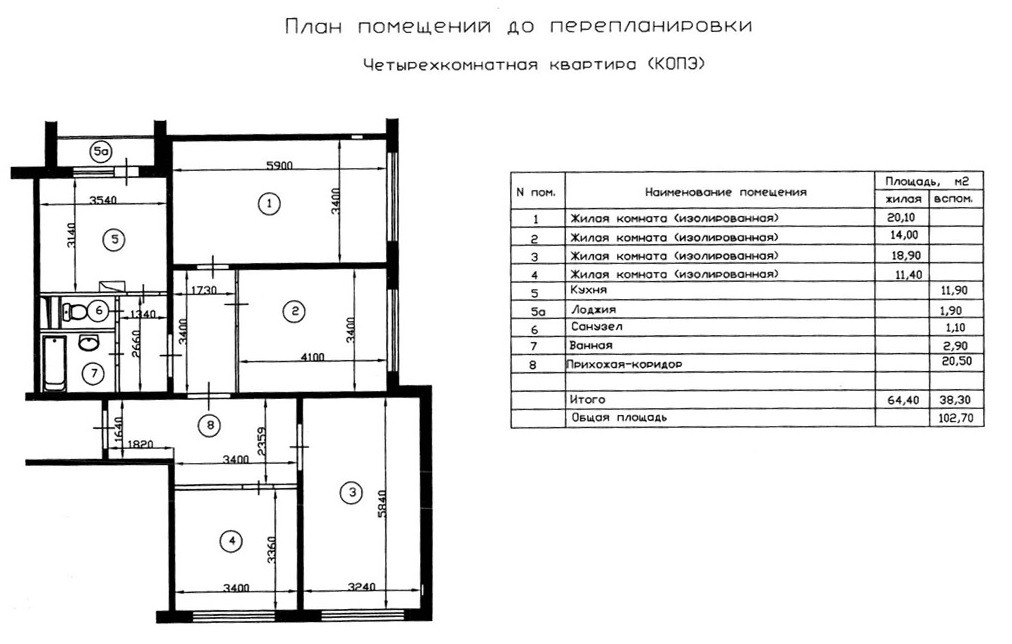 Квартира оптимальной планировки: 4 изолированные комнаты (11,5+20,3+14,2+19,1), кухня с лоджией (10,3+1,1), раздельный санузел (2,9+1,1) и просторный холл (20,8).