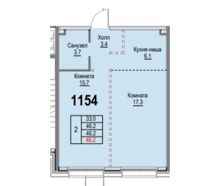 Общая площадь 46 м2