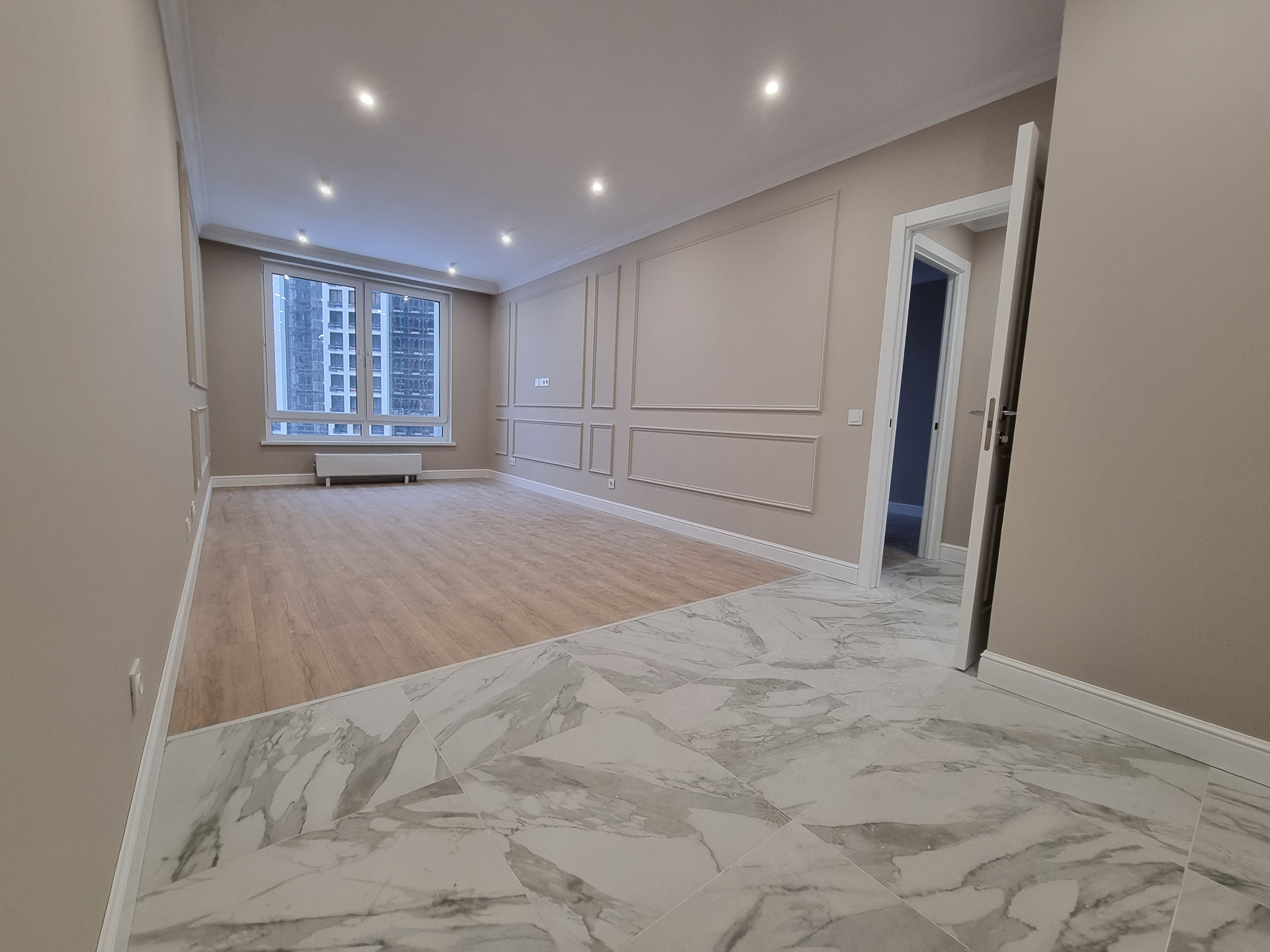 Квартира светлая и теплая с удачной планировкой: общая площадь 46,2, кухня - гостиная 23 м, спальня 16 м, коридор 3.4 м, санузел совмещенный 3.7 м. Комфортный 9й этаж. Окна во двор. Два пассажирских лифта, один грузовой.
