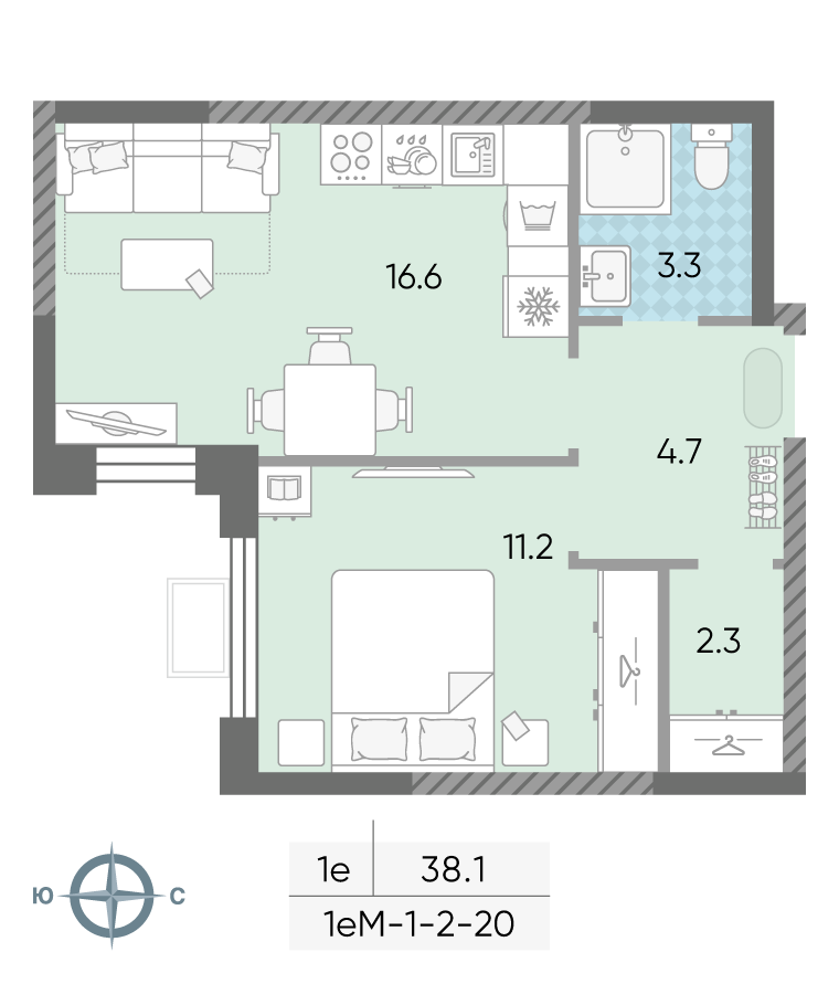 Общая площадь 38.1 м2