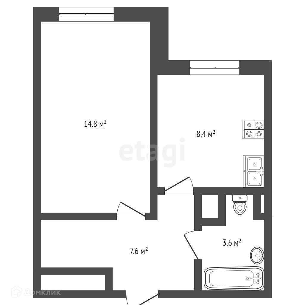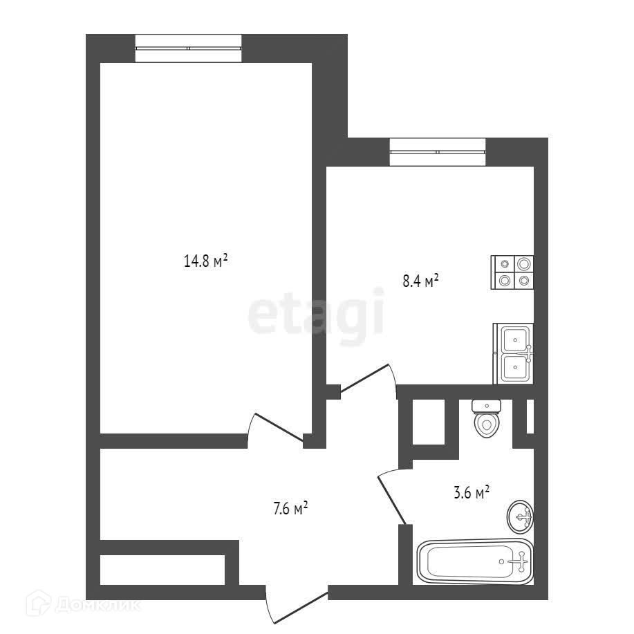 Общая площадь 34.4 м2