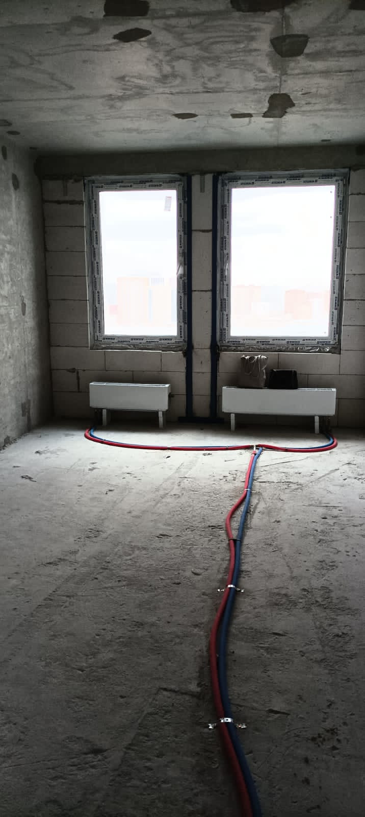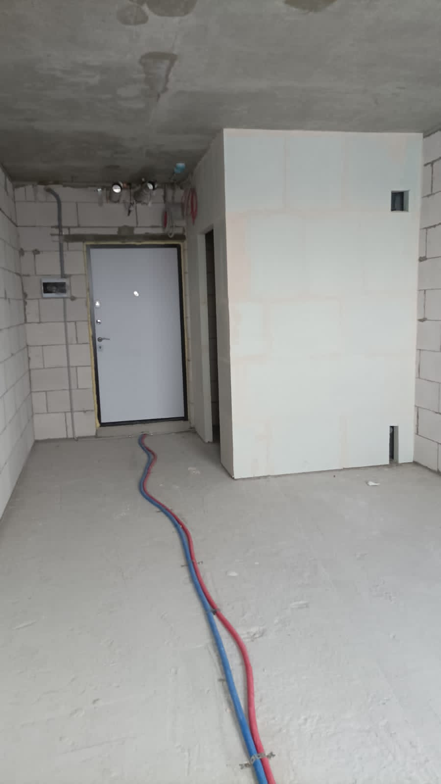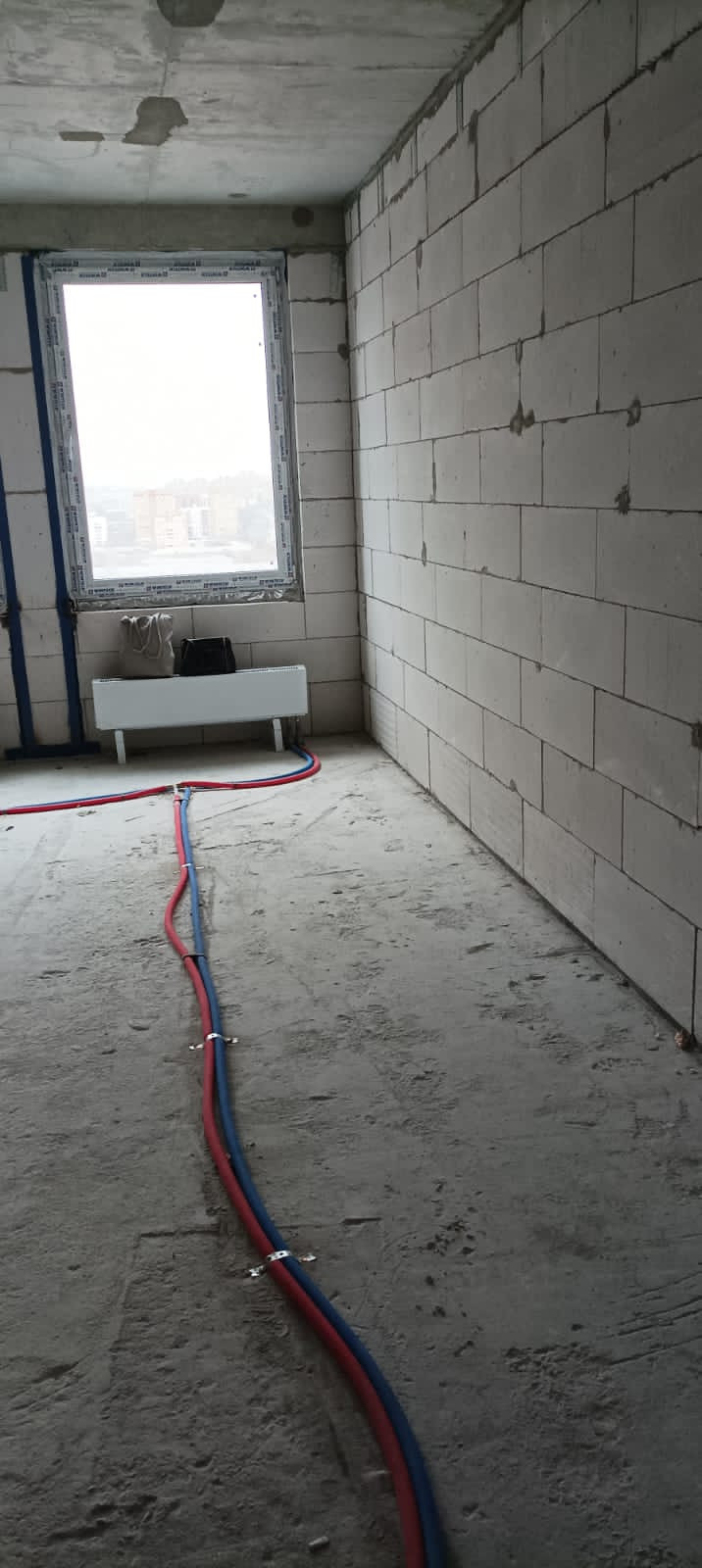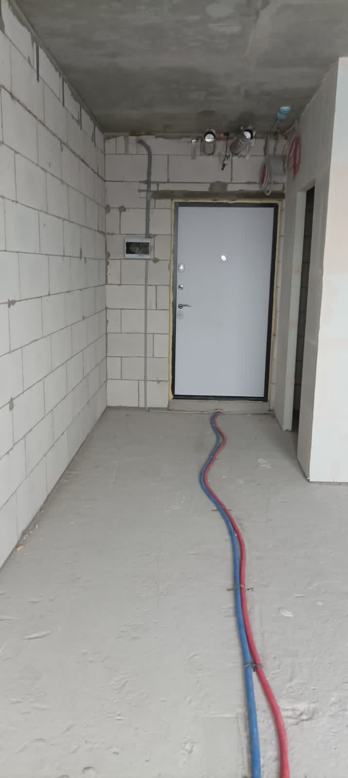 В квартиру заведены все коммуникации: электричество - от двухтарифных, однофазных счетчиков к щитку в квартире, без разводки по квартире; отопление - подключено полностью с разводкой по квартире; водоснабжение и водоотведение - заведено в квартиру без приборов учета и без разводки. Интернет и телевидение без внутриквартирной разводки, точки подключения - в местах общего пользования дома.