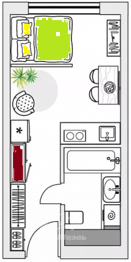 Жилая площадь 16.93 м2
