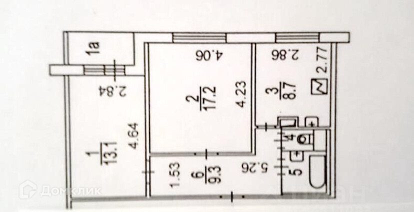 Общая площадь 53.2 м2