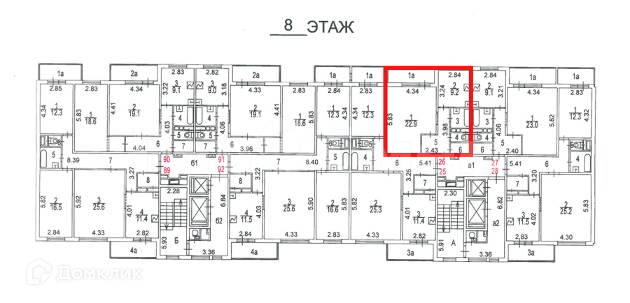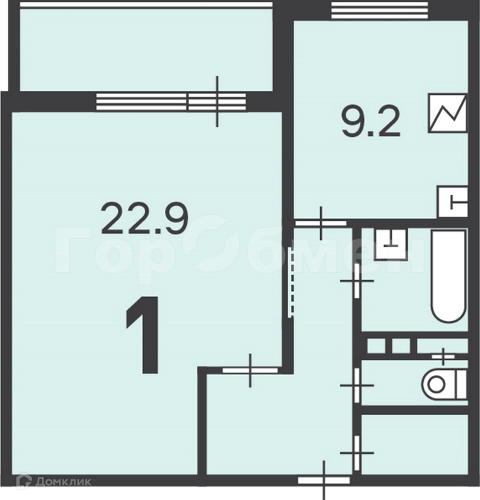 Жилая площадь 22.9 м2