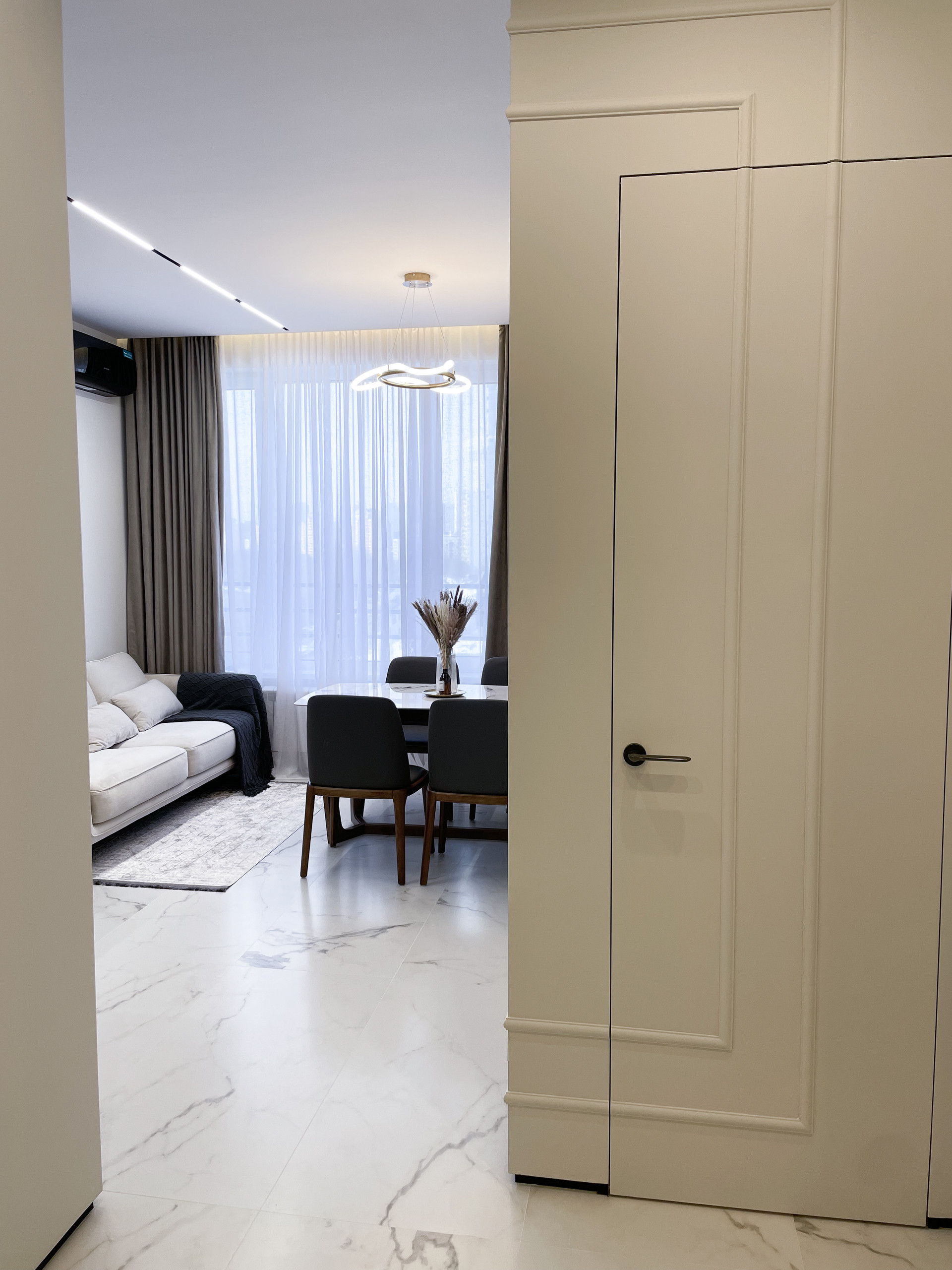 В квартире выполнен трендовый дизайнерский ремонт, выдержанный в монохромной гамме, с использованием качественных материалов: натуральный шпон на фасадах мебели, натуральная паркетная доска, сатинированный матовый керамогранит, скрытые двери и многое другое. Квартира укомплектована необходимой техникой (плита, холодильник, посудомоечная машина, вытяжка, варочная панель, стиральная машина, телевизор, кондиционеры).