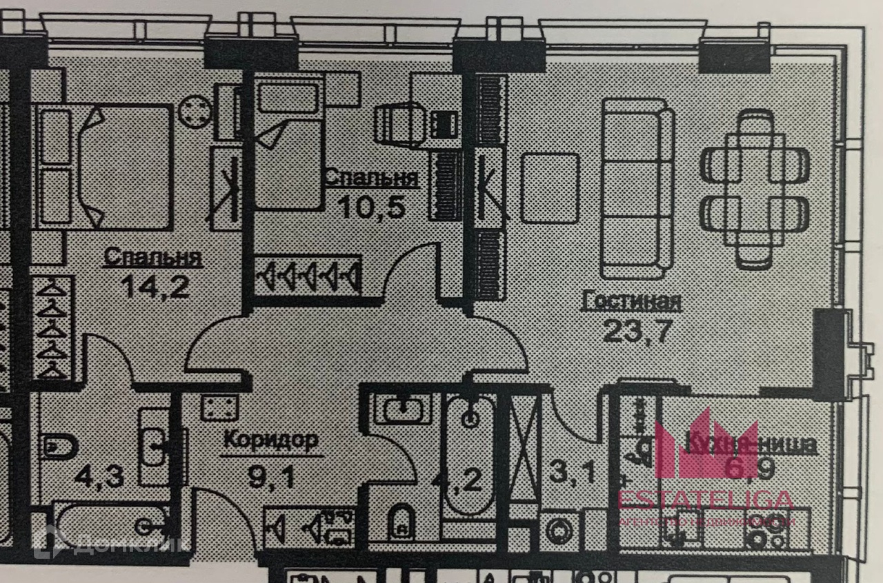 Жилая площадь 48.4 м2