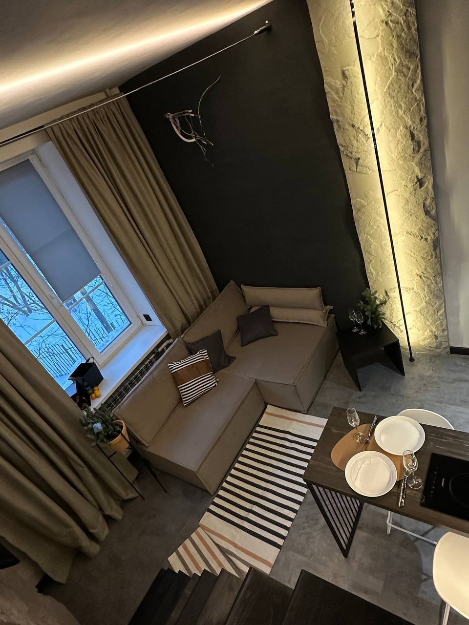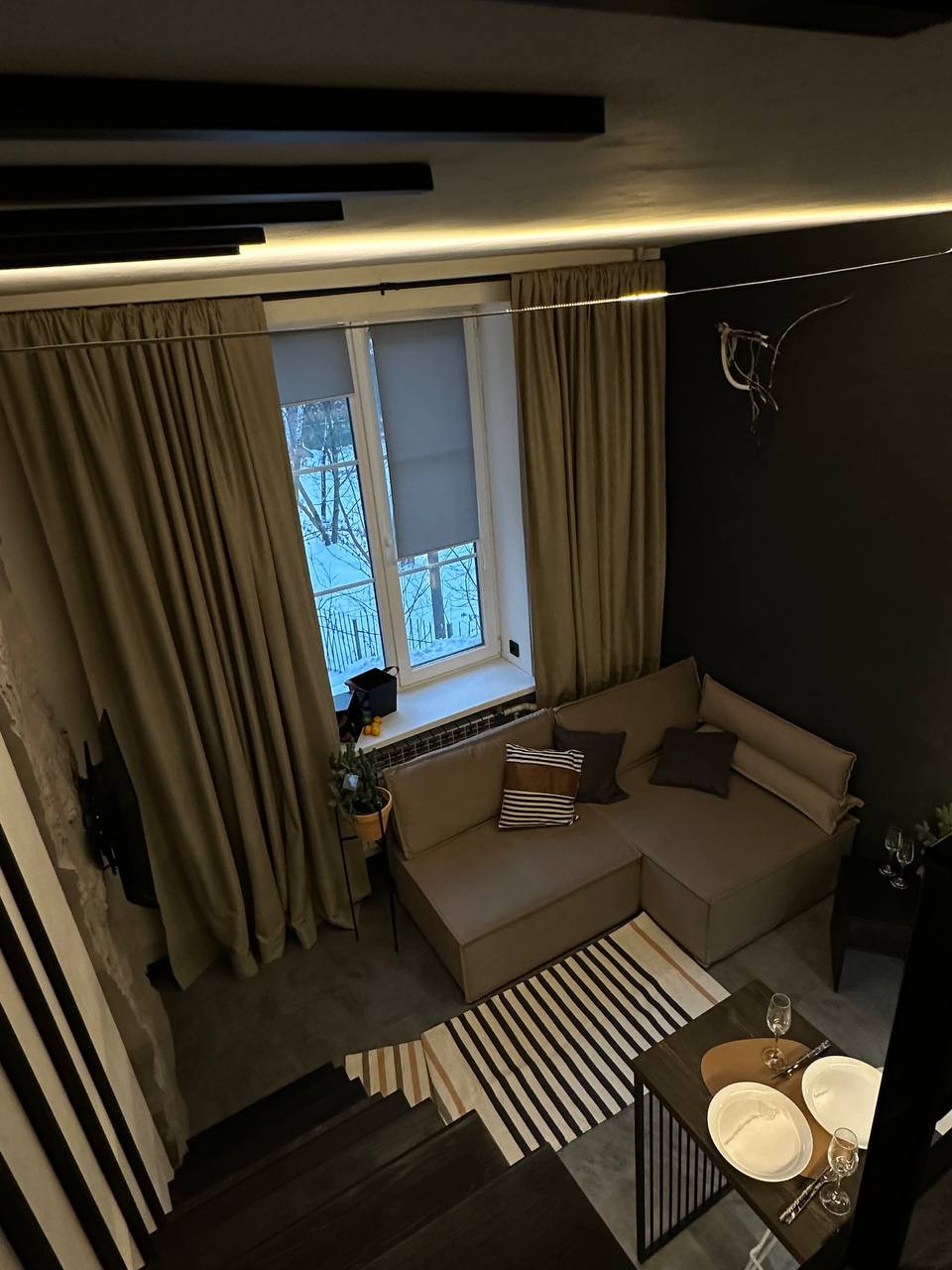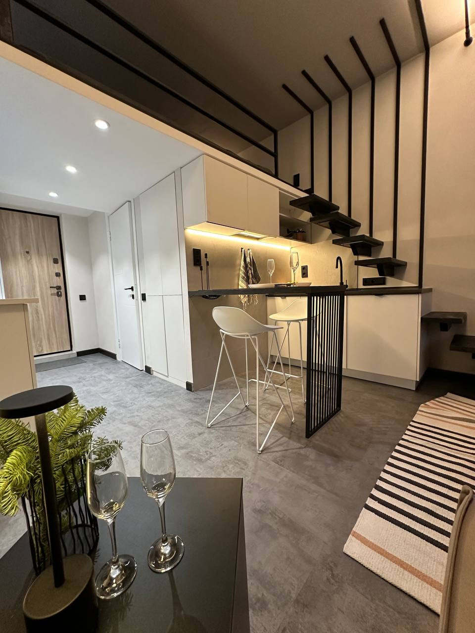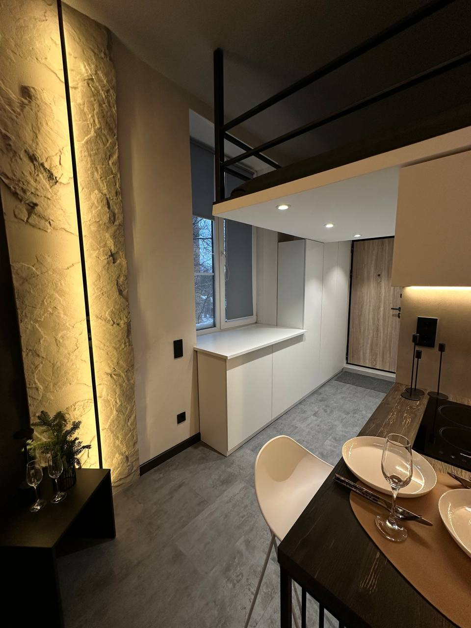 В апартаментах выполнен качественный дизайнерский ремонт. Второй уровень для спального места и места для хранения. Продажа с мебелью, техникой и предметами интерьера. Один взрослый собственник, быстрый выход на сделку. Без обременений. Рядом с апартом лифт и камера наблюдения,  есть охрана, охраняемая парковка (всегда есть свободные места для собственников).  В студии никто не проживал. Рядом сад, что позволяет совершать пешие прогулки, заниматься спортом. Студия подходит под ипотеку.