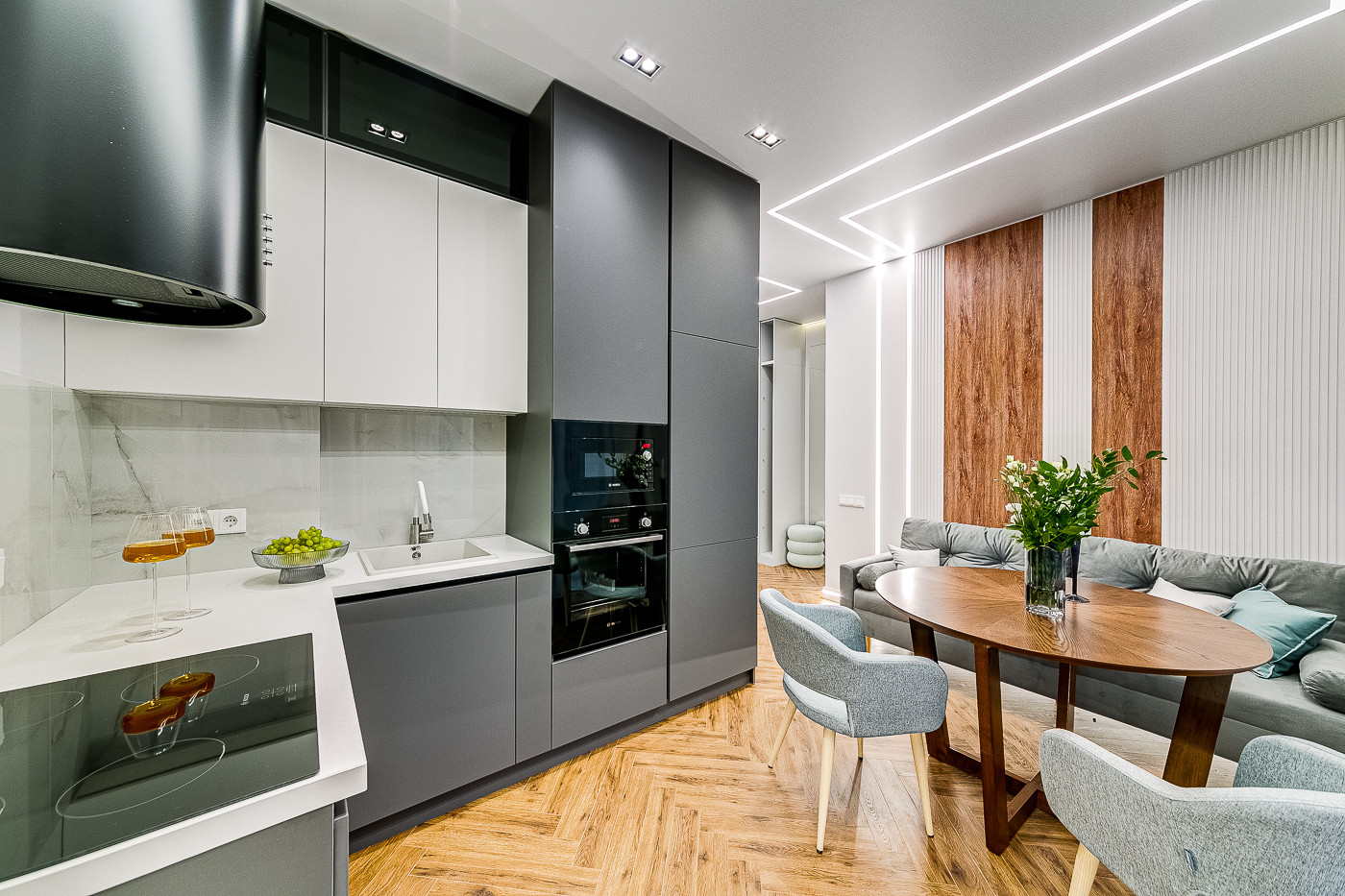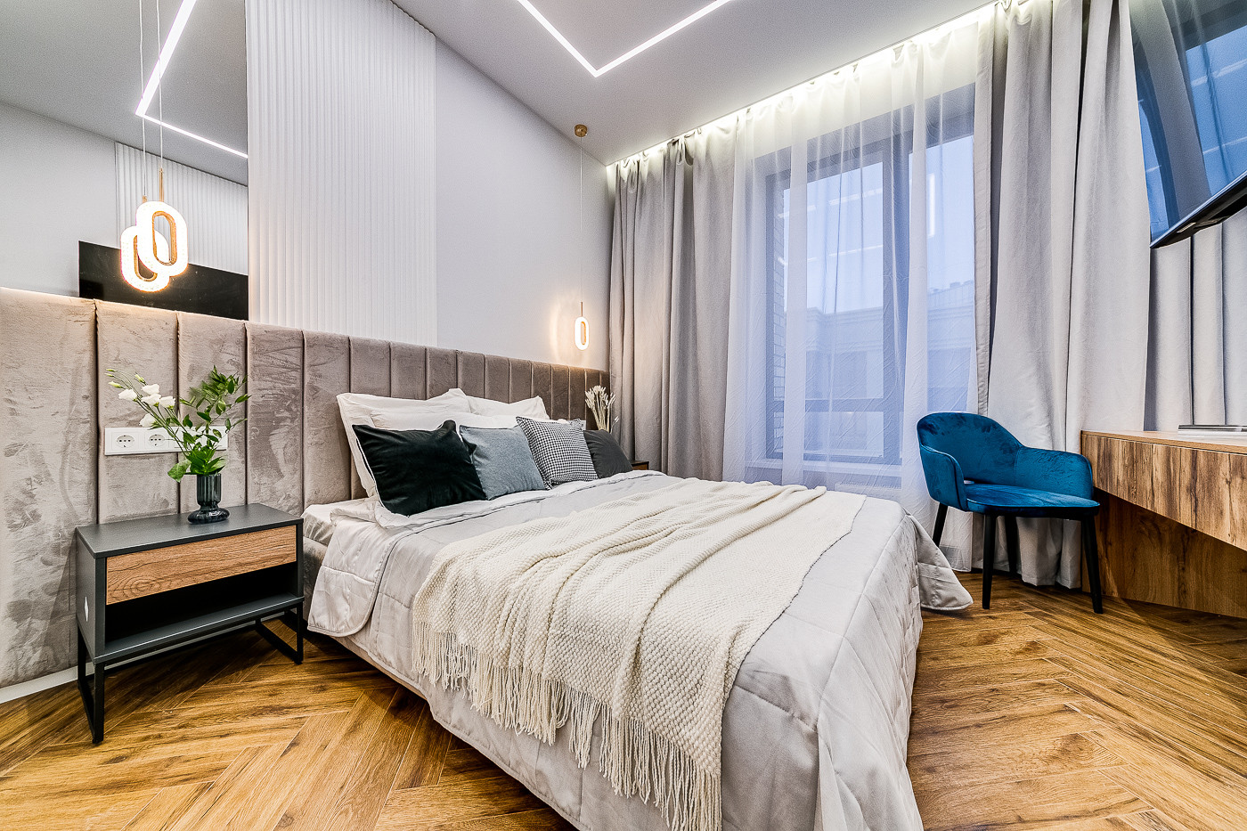 Дизайн проект выполнен в стиле минимализм с использованием современных материалов. Вся мебель и техника входит в стоимость объекта недвижимости - холодильник, кондиционер, стиральная машина, посудомоечная машина, духовой шкаф, варочная поверхность. Техника Bosch. В квартире уже проведен интернет и видеодомофон. Окна квартиры во двор и на стадион. В ванной установлен теплый пол.