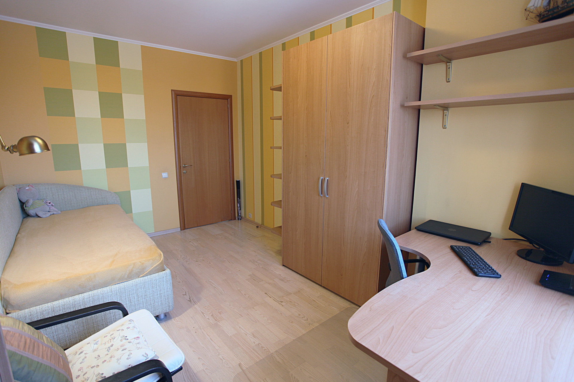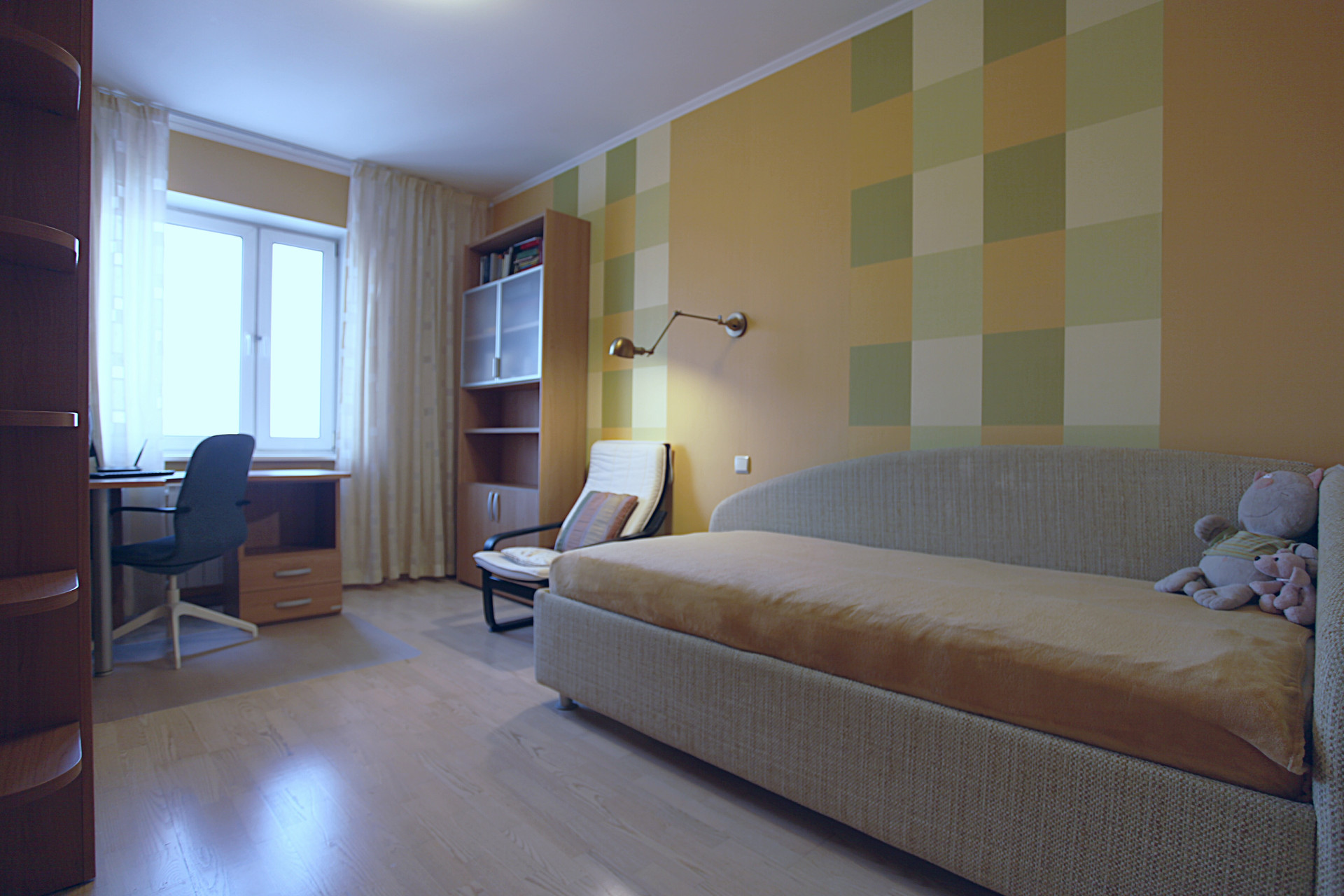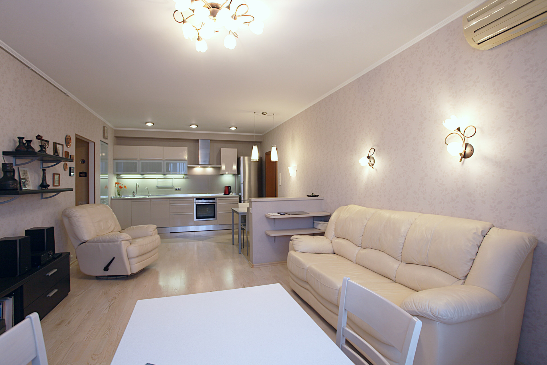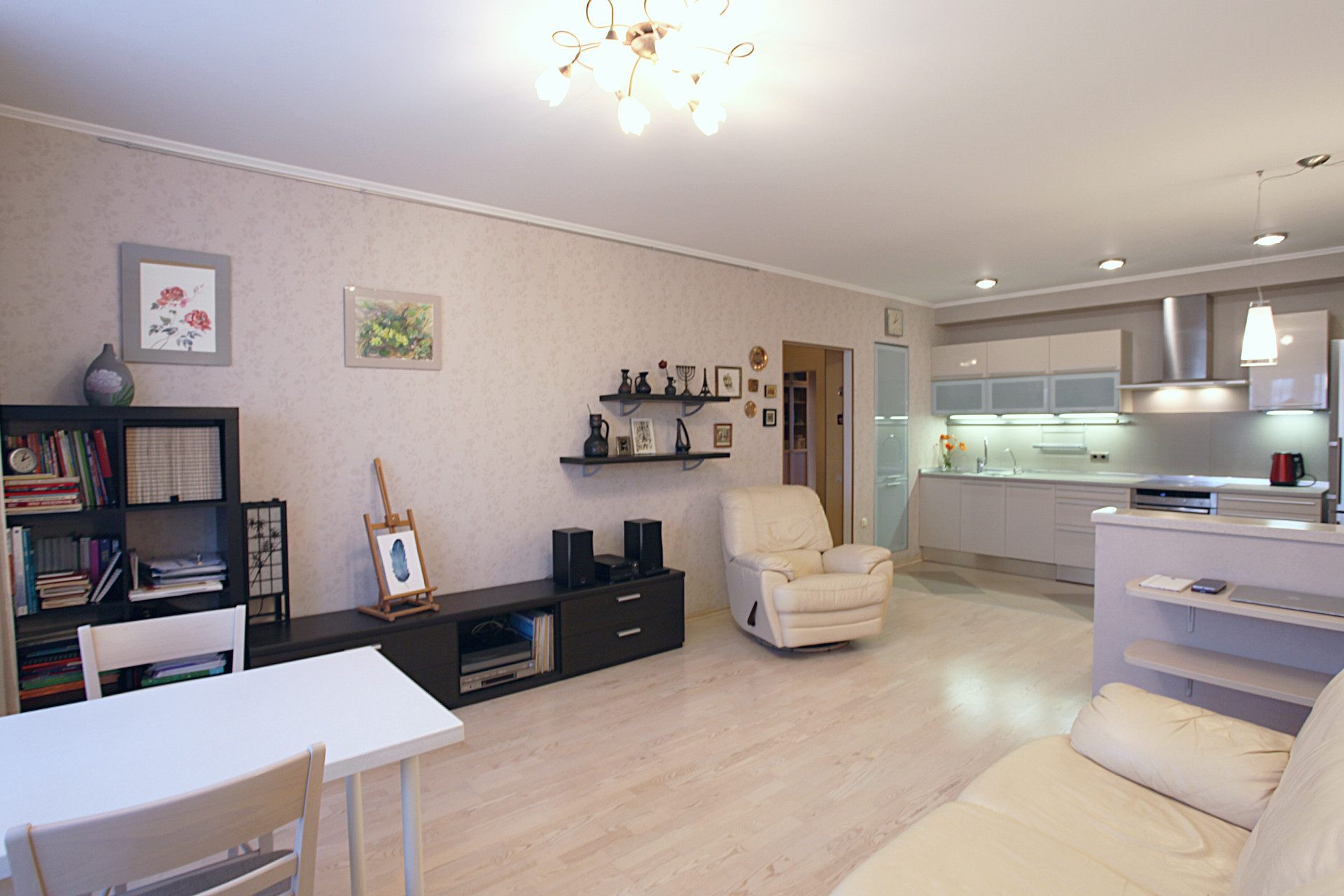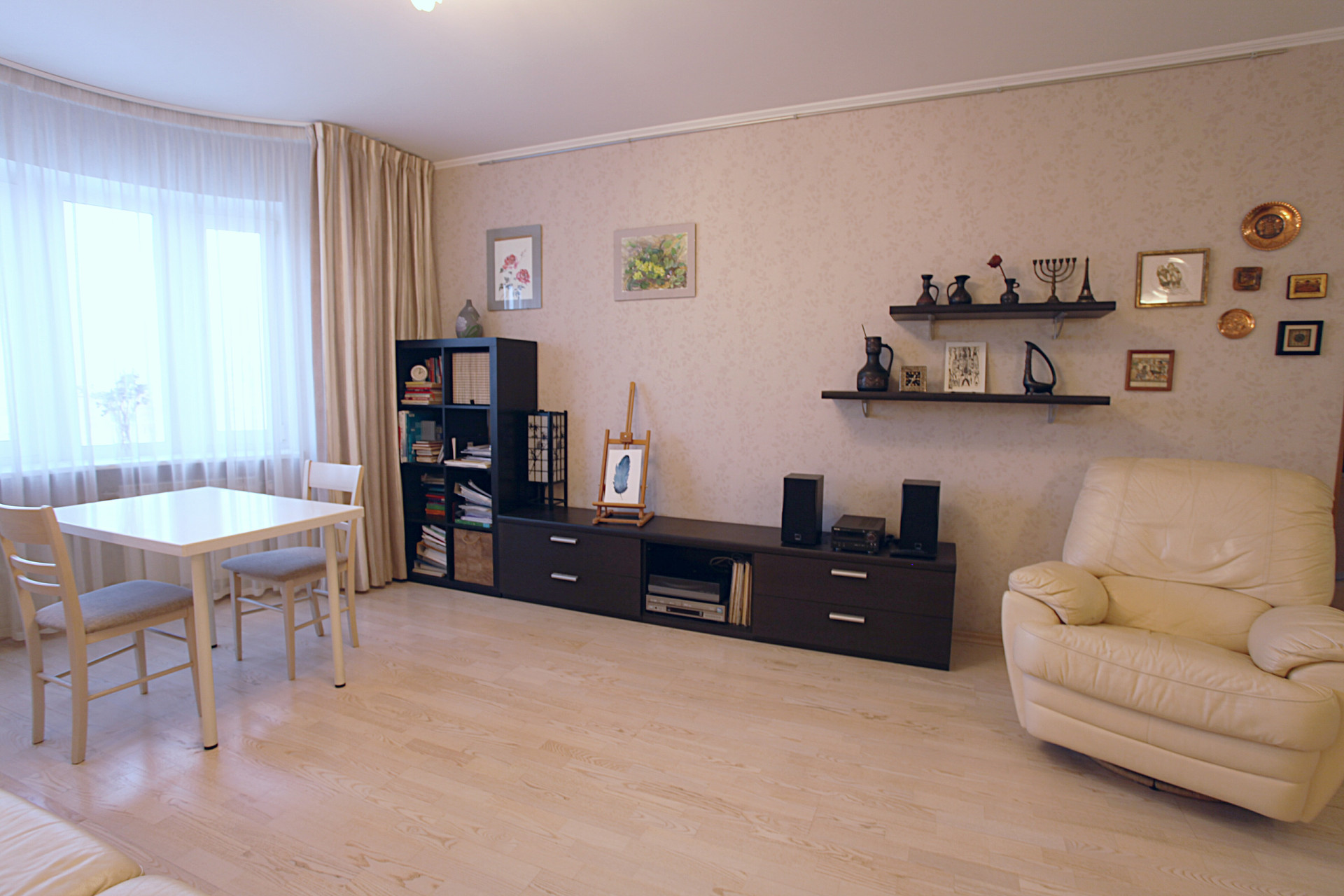 Очень качественный евро-ремонт со всеми современными технологиями и дорогими отделочными материалами. Большая кухня-гостинная с эркером и 3 изолированные комнаты, 2 полноценных санузла, застекленная лоджия. Перепланировка узаконена в том виде, как есть на сегодня.