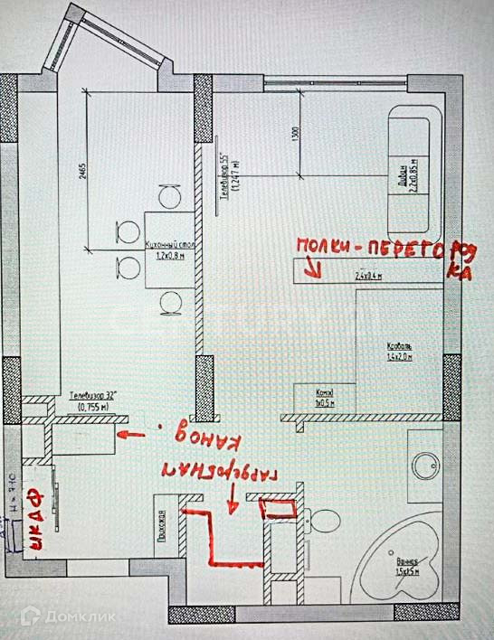 Высота потолков 2.9метра.