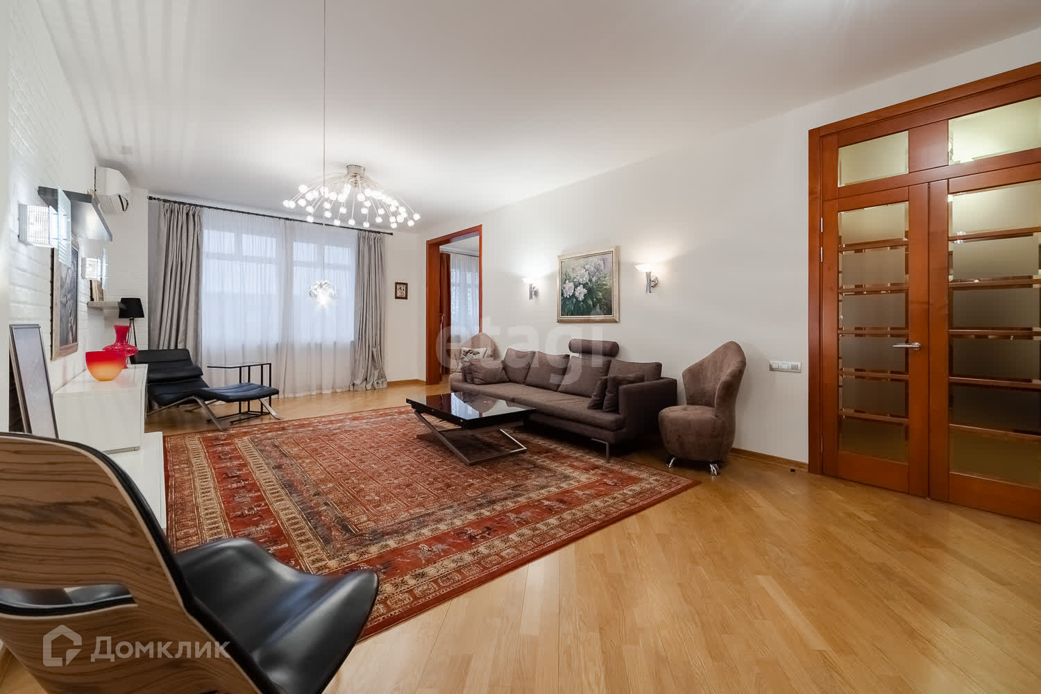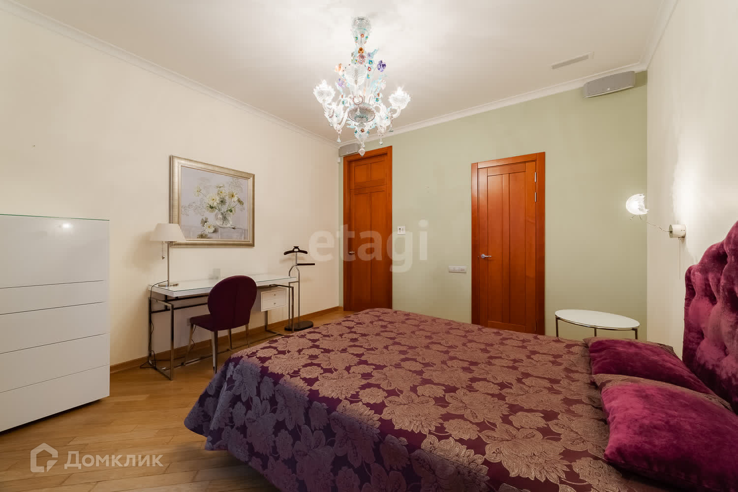 5 комнат, 2 мастер-спальни с отдельными лоджиями. Одна спальная комната без санузла. Большая гостиная комната в 42 кв.м.