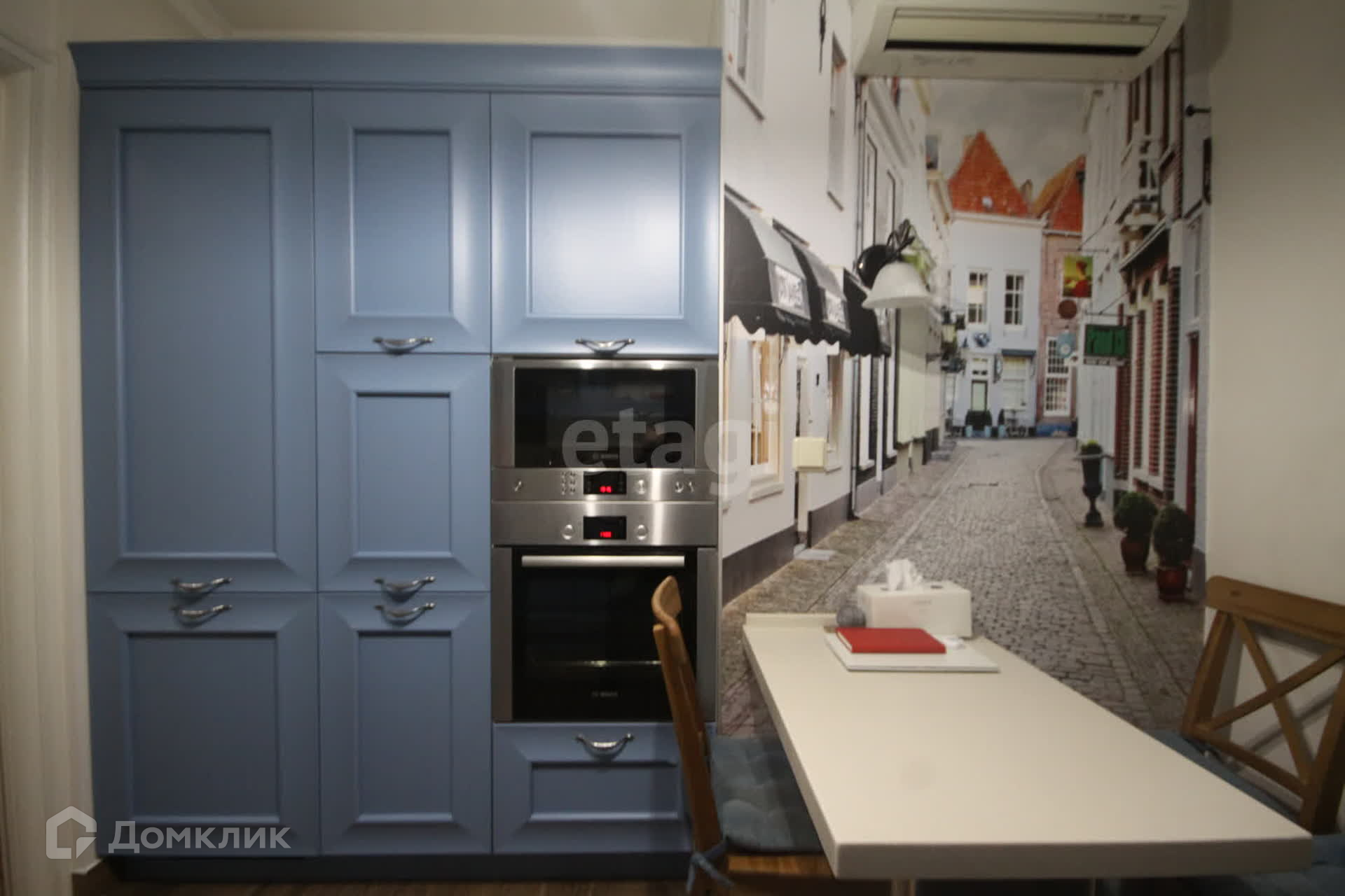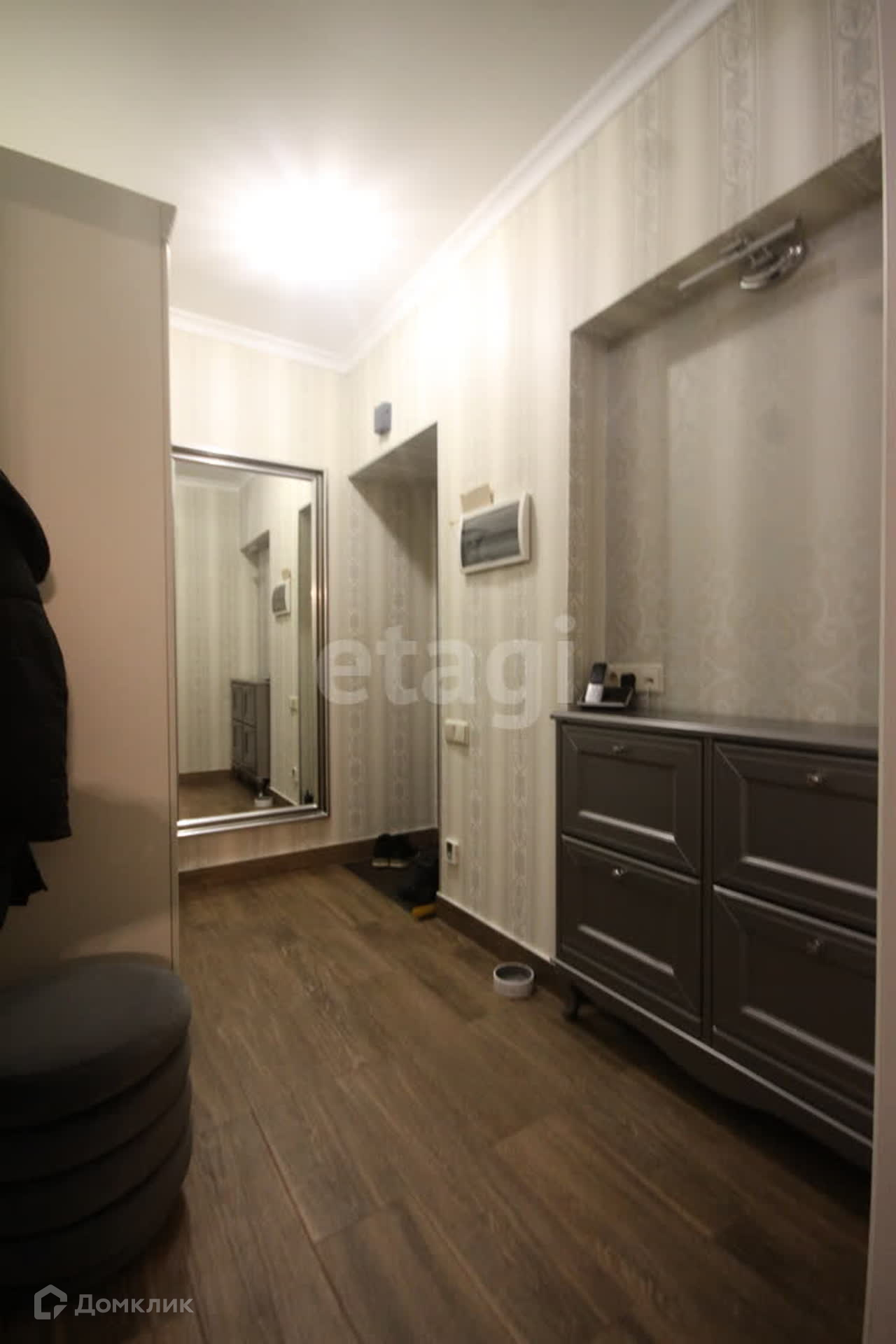 Остается вся мебель и бытовая техника (стиральная машина с сушкой встроенная Мiеlе, холодильник встроенный Liеbhеrr, варочная панель (газовая), духовка (электрическая), микроволновка, посудомоечная машина Воsh), кондиционеры (в кухне и в гостиной). Мебель кухни, прихожей и библиотека в гостиной изготавливались на заказ. Текстиль (шторы, покрывало на кровать), светильники остаются.