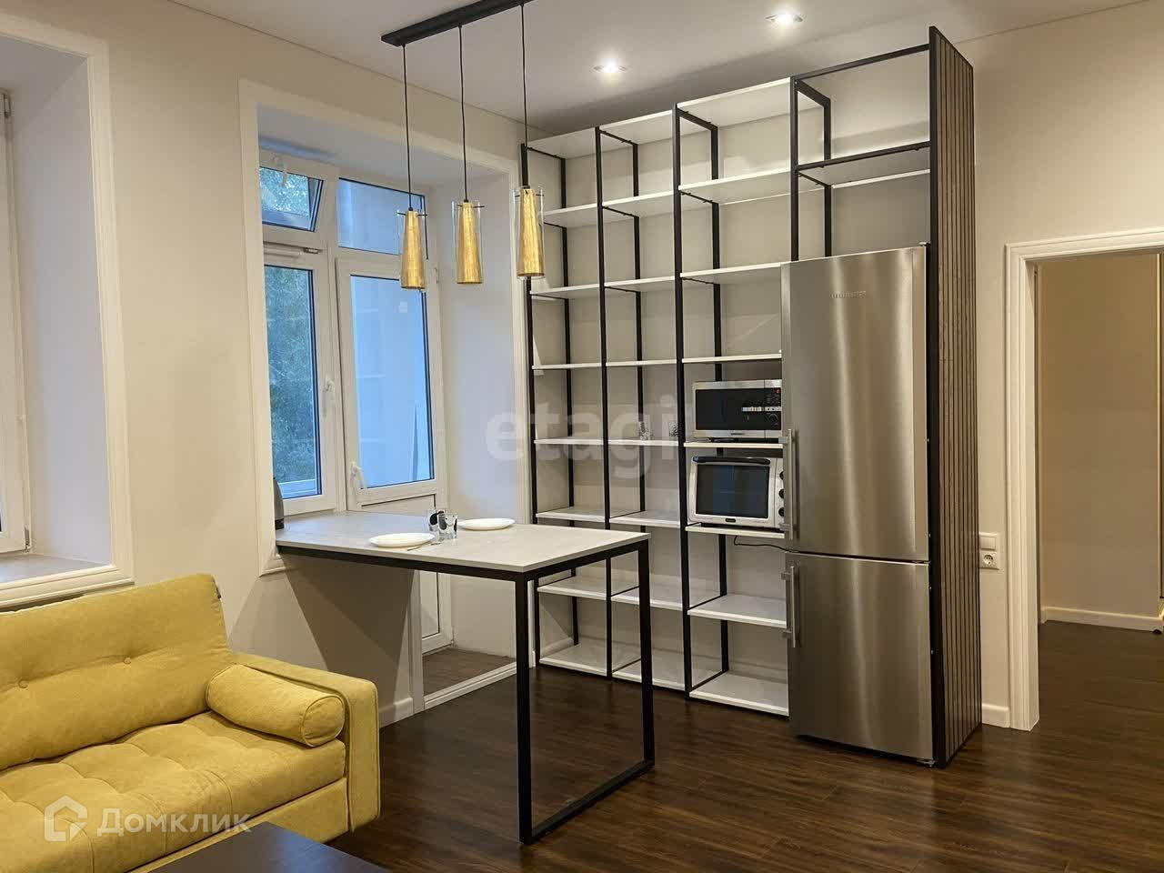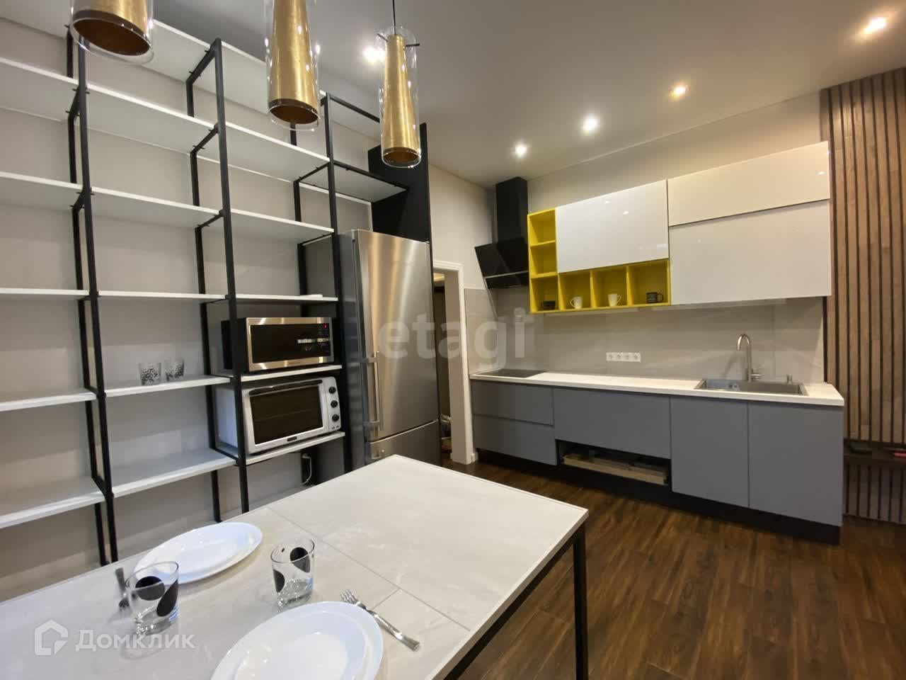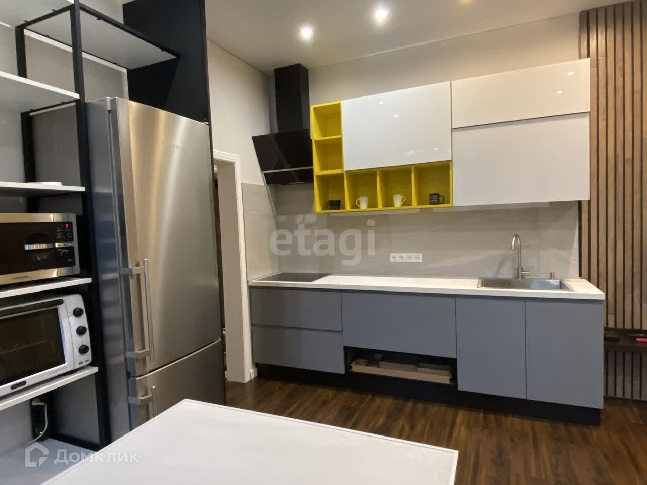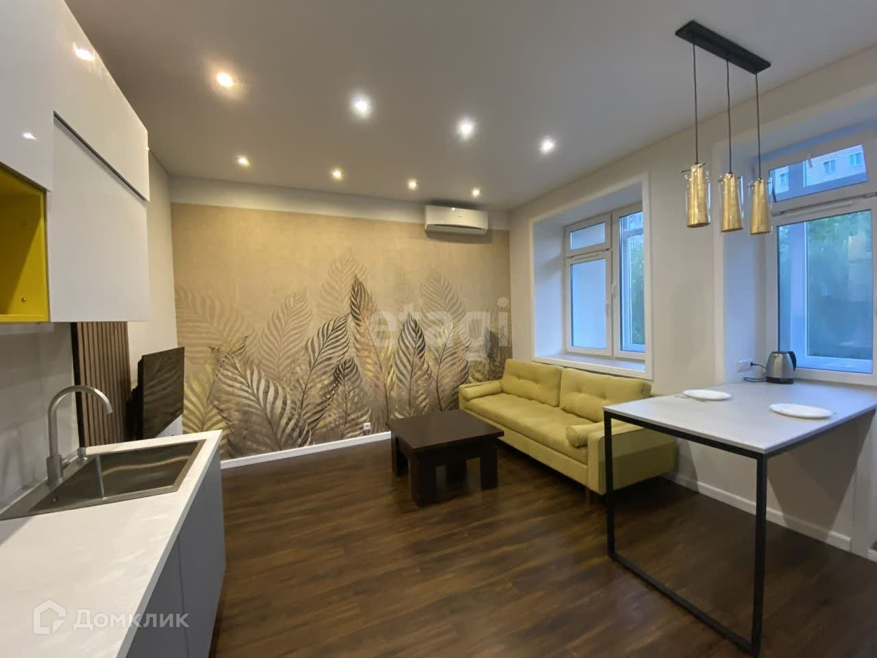 Просторная кухня-гостиная. Современная техника и мебель достается новому владельцу.