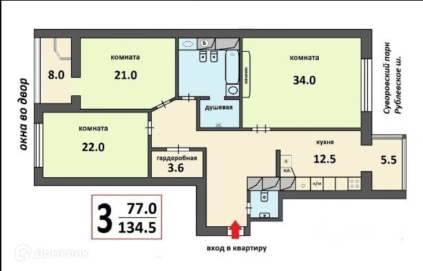 Общая площадь 134.5 м2