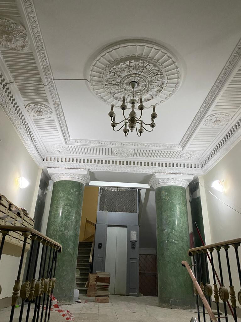 Сейчас в доме проходит капитальный ремонт( отреставрирован фасад дома, сейчас проходит ремонт в подъездах).Окна во двор.
