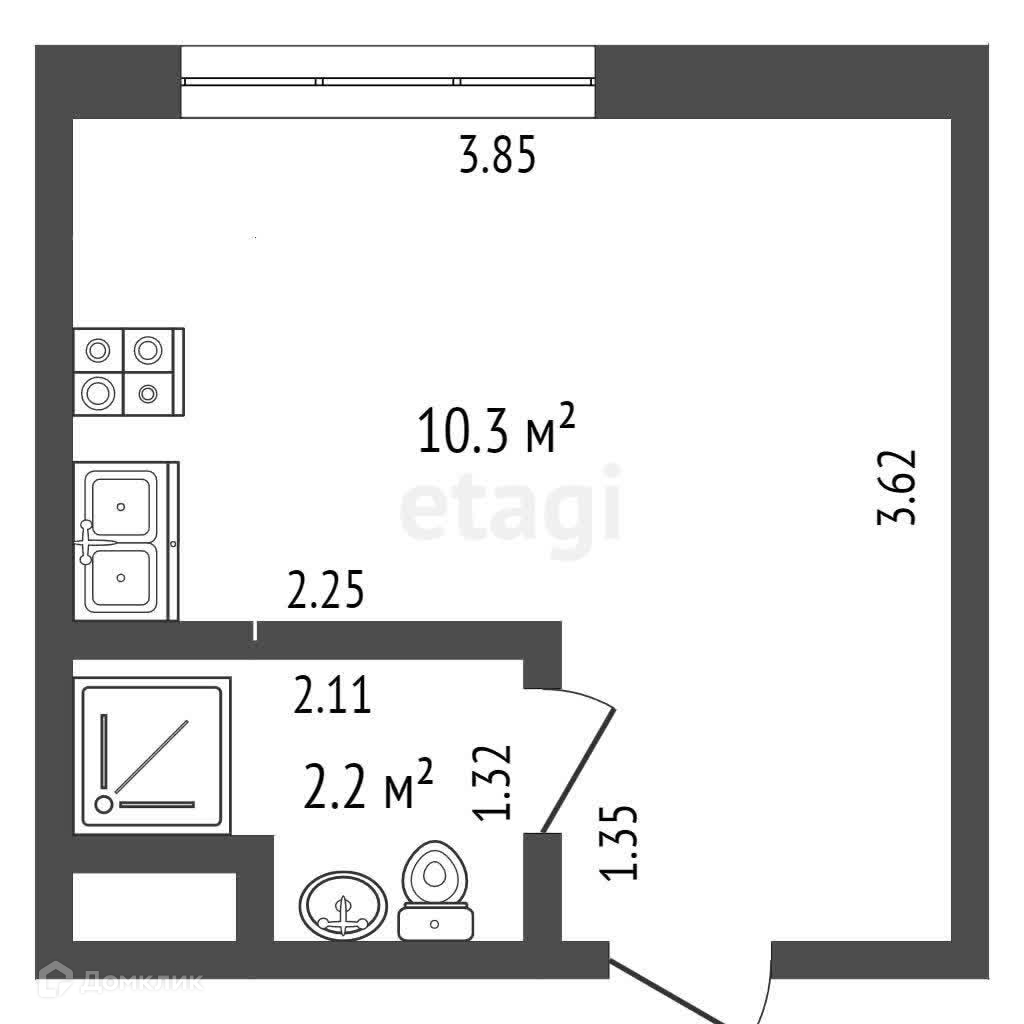 В студии есть все необходимое для проживания. Продаётся вместе с мебелью.