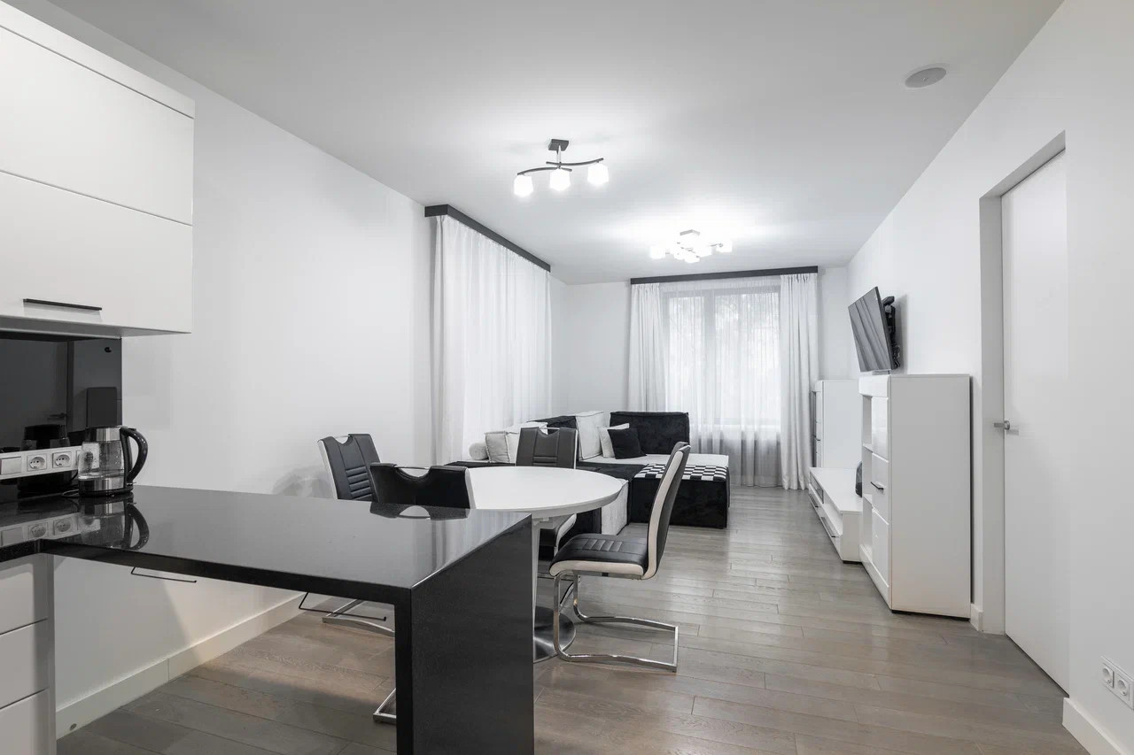 О ДОМЕ: "Большевик"- клубный комплекс апартаментов премиум класса, состоящий из трех зданий, малоэтажной застройки, со своим внутренним (приватным) двором. Огороженная территория, видеонаблюдение, охрана. ОБ АПАРТАМЕНТЕ: Грамотная планировка: кухня-гостинная, мастер-спальня, большая гардеробная, просторный холл, гостевой санузел, постирочная.  Отличный ремонт, в отделке которого использованы только высококачественные материалы, дорогая сантехника. Апартамент укомплектован мебелью и бытовой техникой. Грамотная планировка: кухня-гостинная, мастер-спальня, очень большая гардеробная, просторный холл, гостевой санузел, постирочная. ИНФРАСТРУКТУРА: на территории комплекса есть ресторан, кофейня. В пешей доступности, магазины "Азбука вкуса", "Вкусвилл", "Перекресток". БЕЗ ТОРГА.