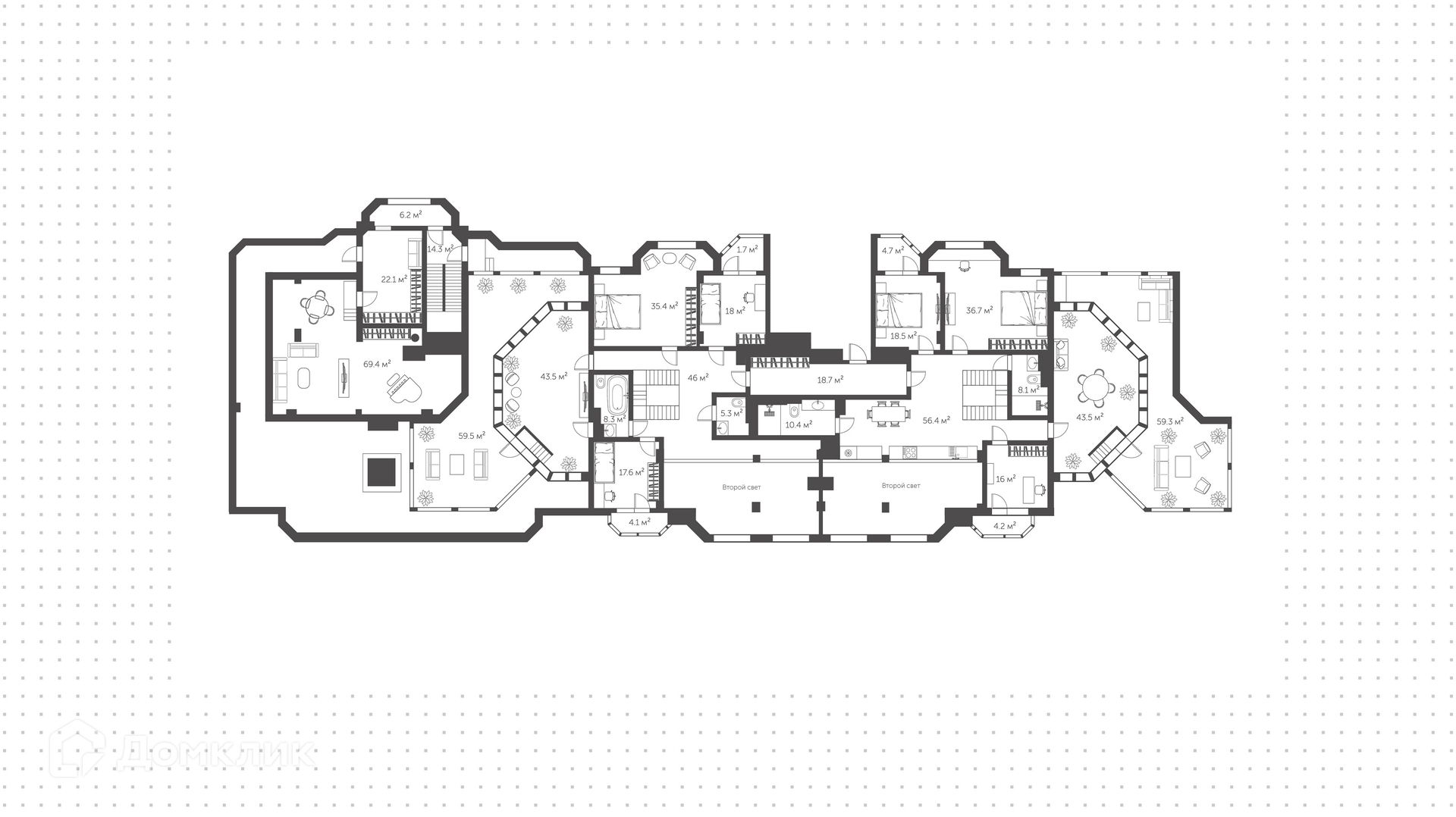 ID 241 107. Двухуровневый пентхаус площадью 454 м² в комплексе «Доминион» в 1-й минуте от станции метро «Университет» и в шаговой доступности от МГУ.