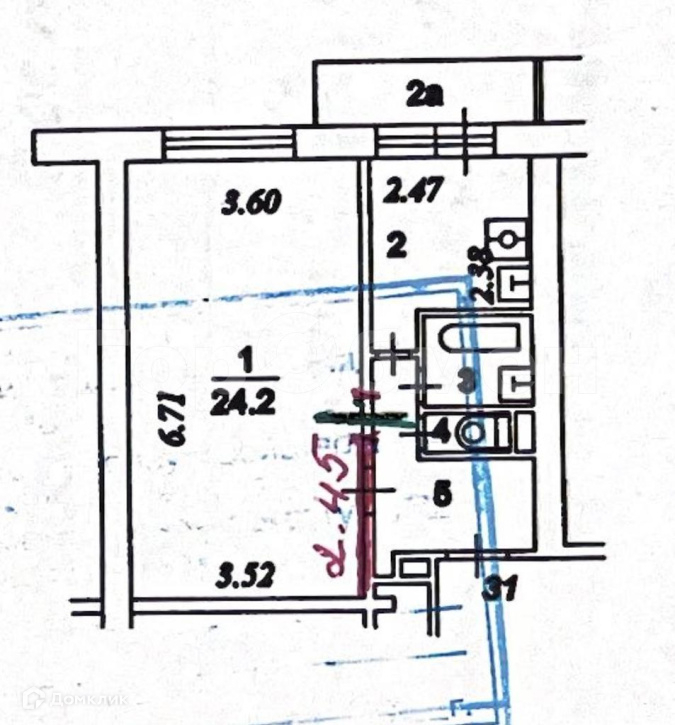Жилая площадь 24.2 м2