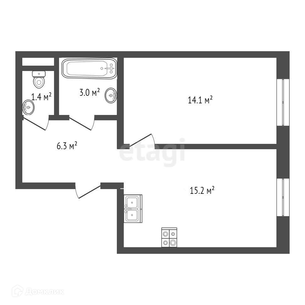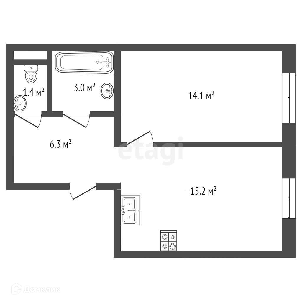 Общая площадь 40.2 м2