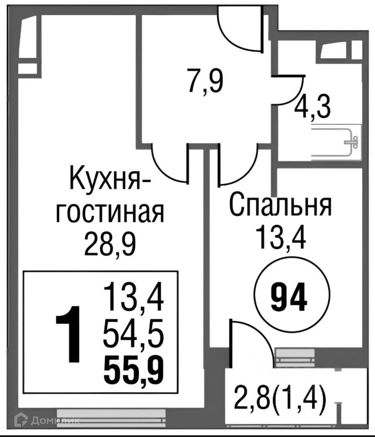 Жилая площадь 13.4 м2
