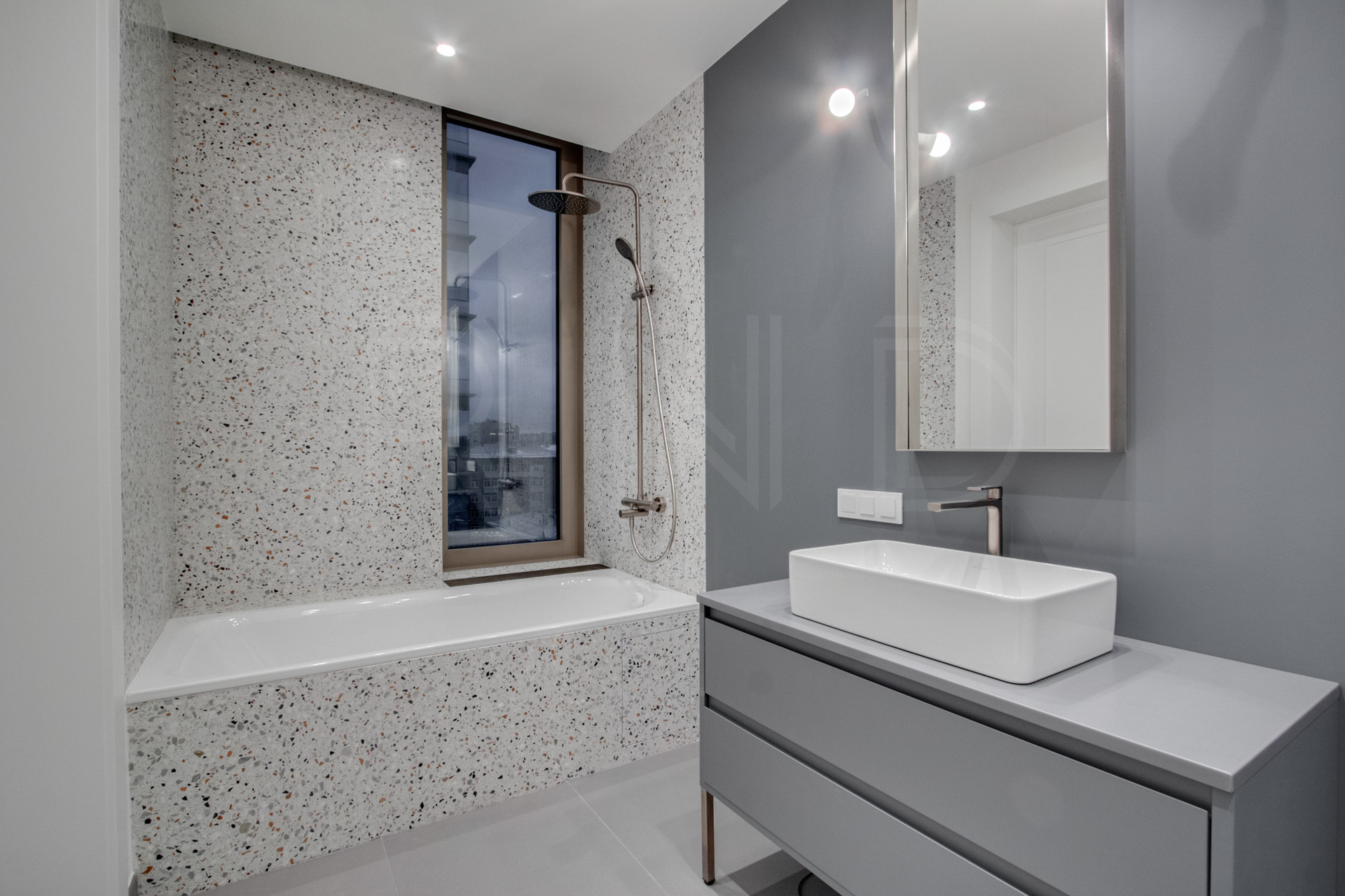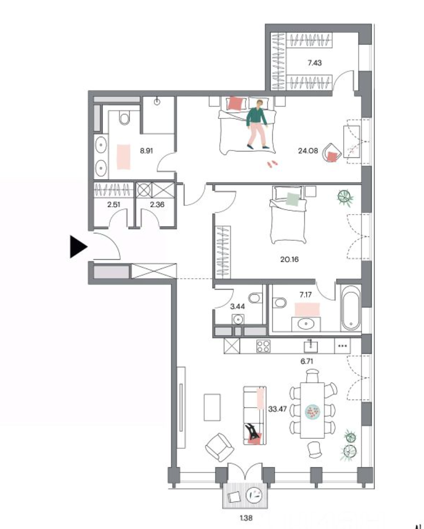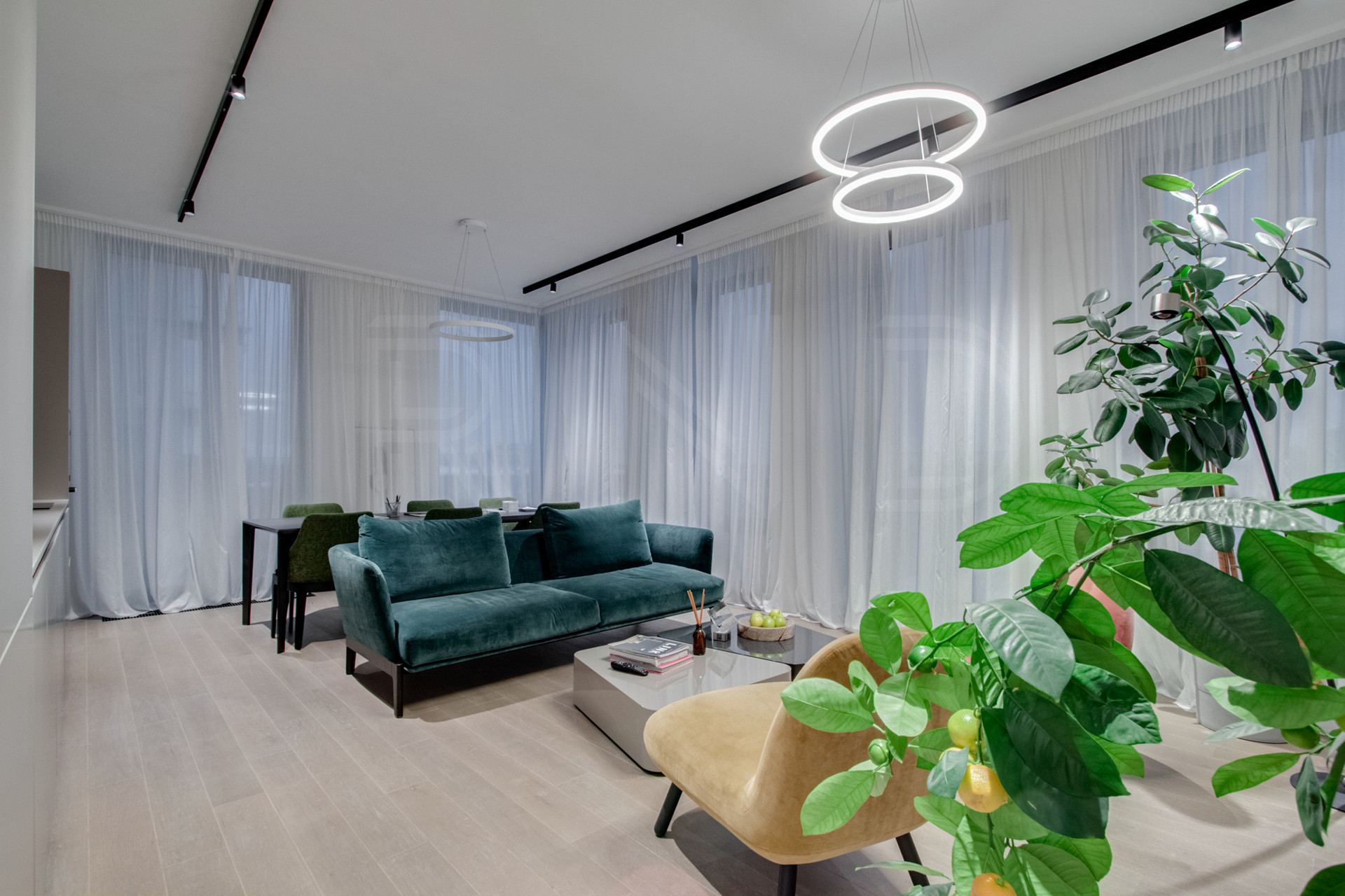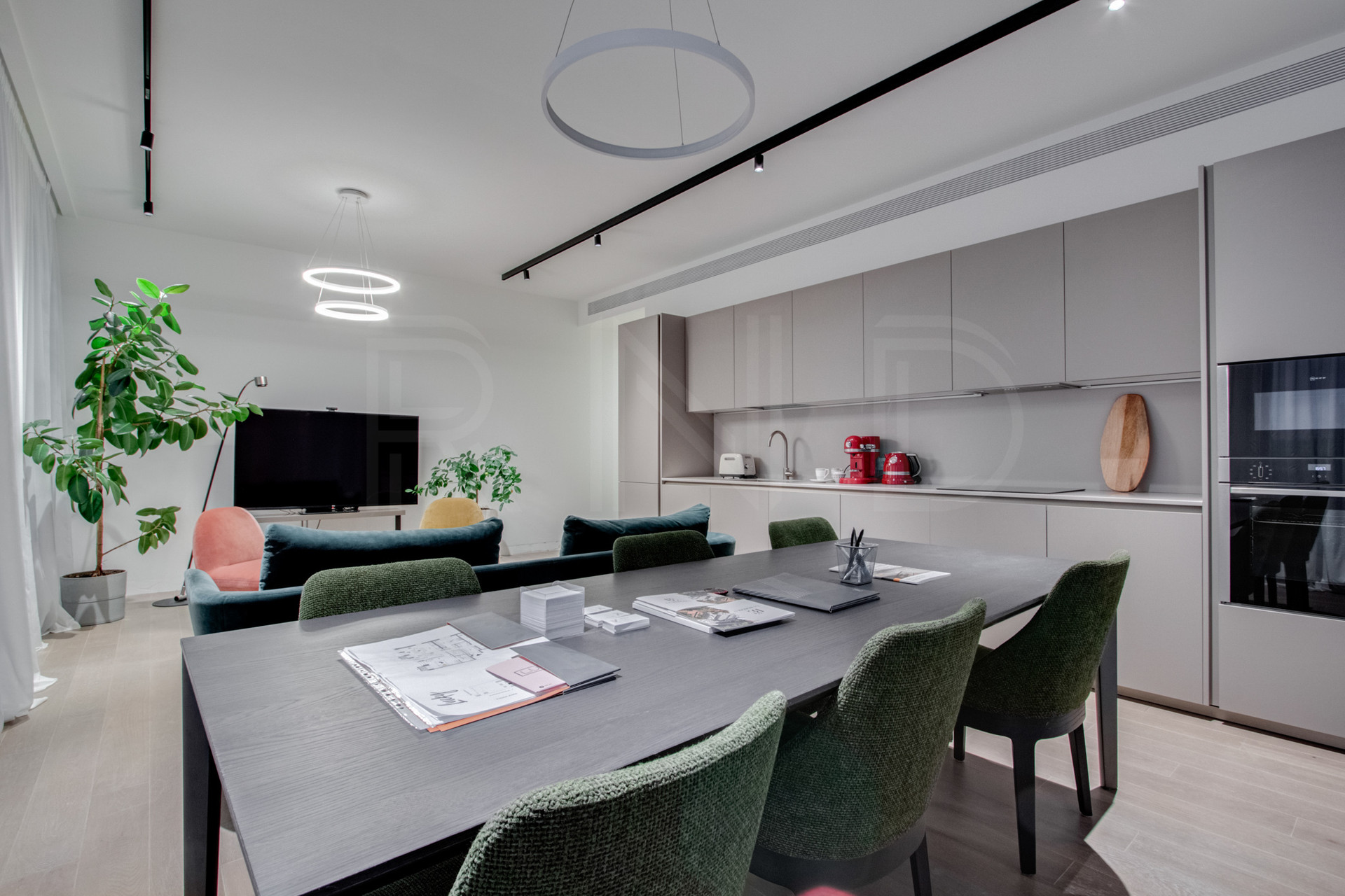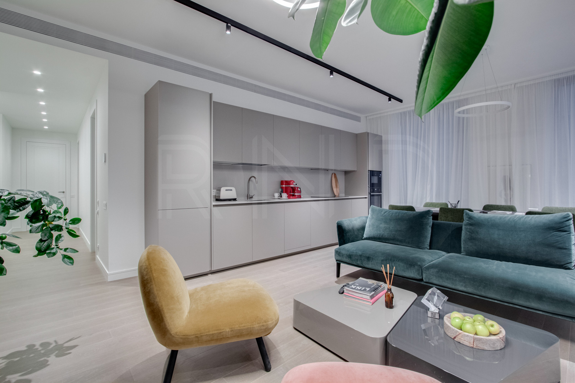 Премиальная отделка, включающей оборудованную кухню и ванные комнаты.