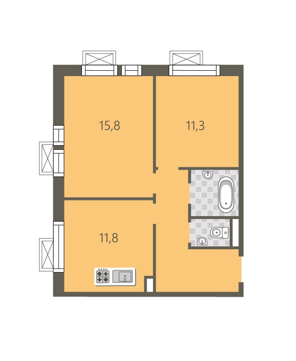 Общая площадь 52.6 м2