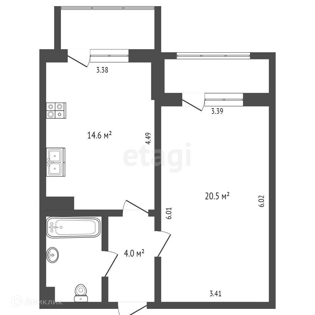 Балкон, лоджия 1 балкон