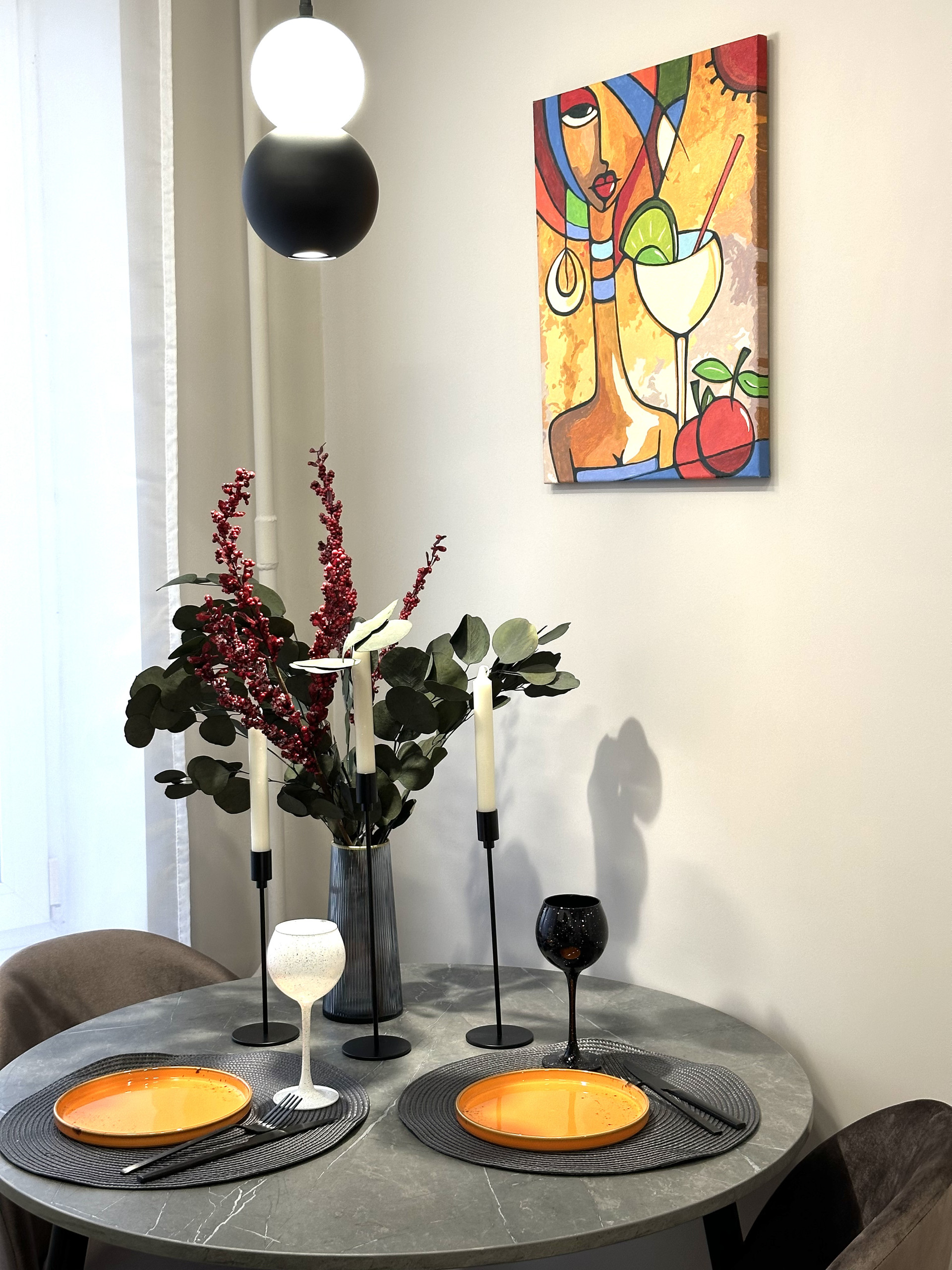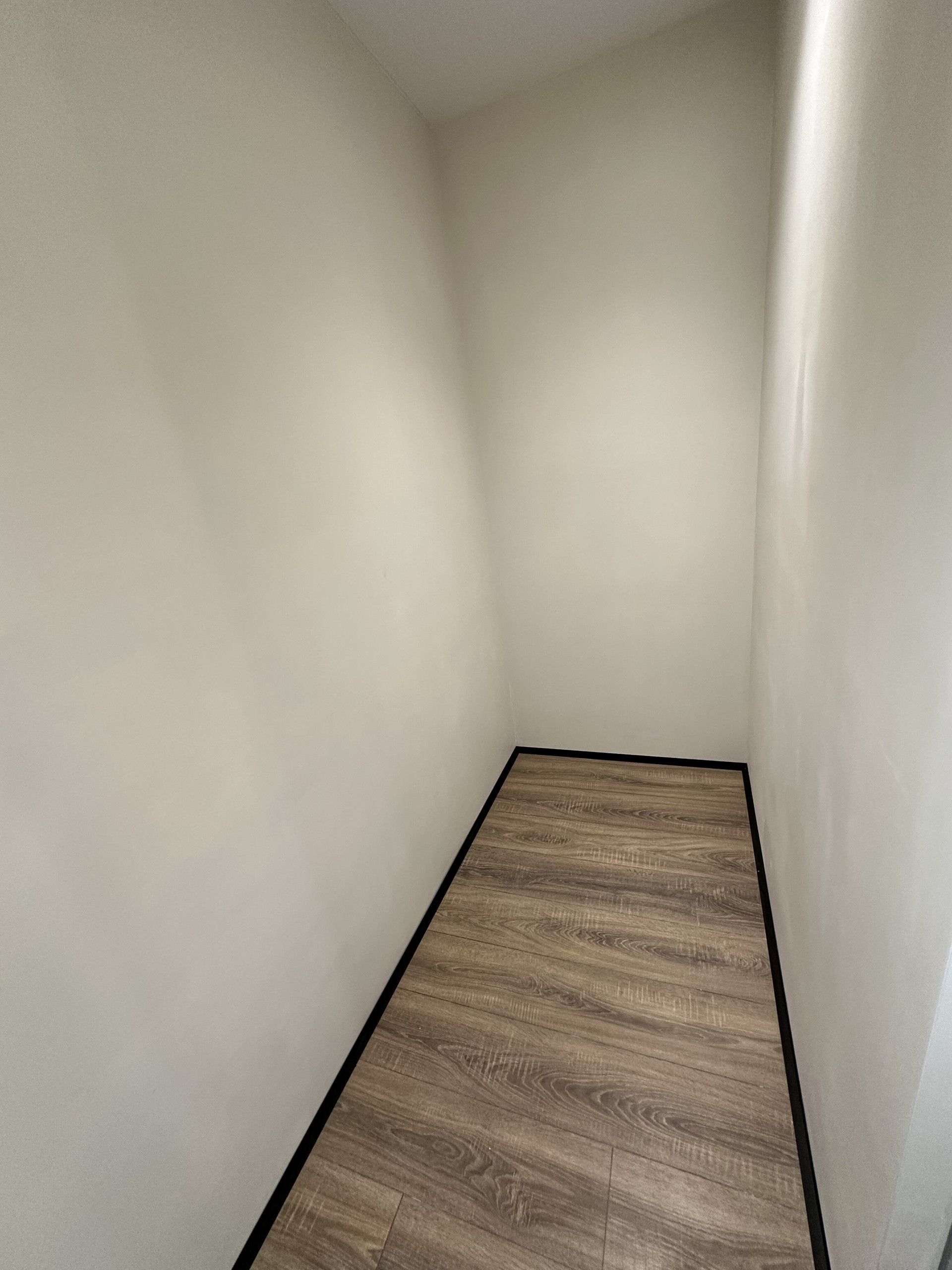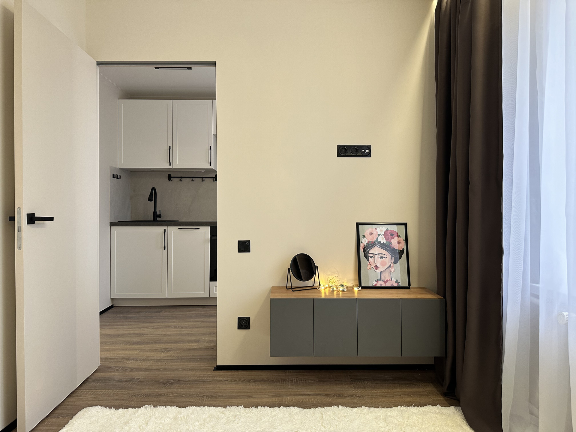 В этой уютной квартире грамотно продумано место для хранения-  просторная гардеробная комната спрятана за скрытой дверью в спальне.