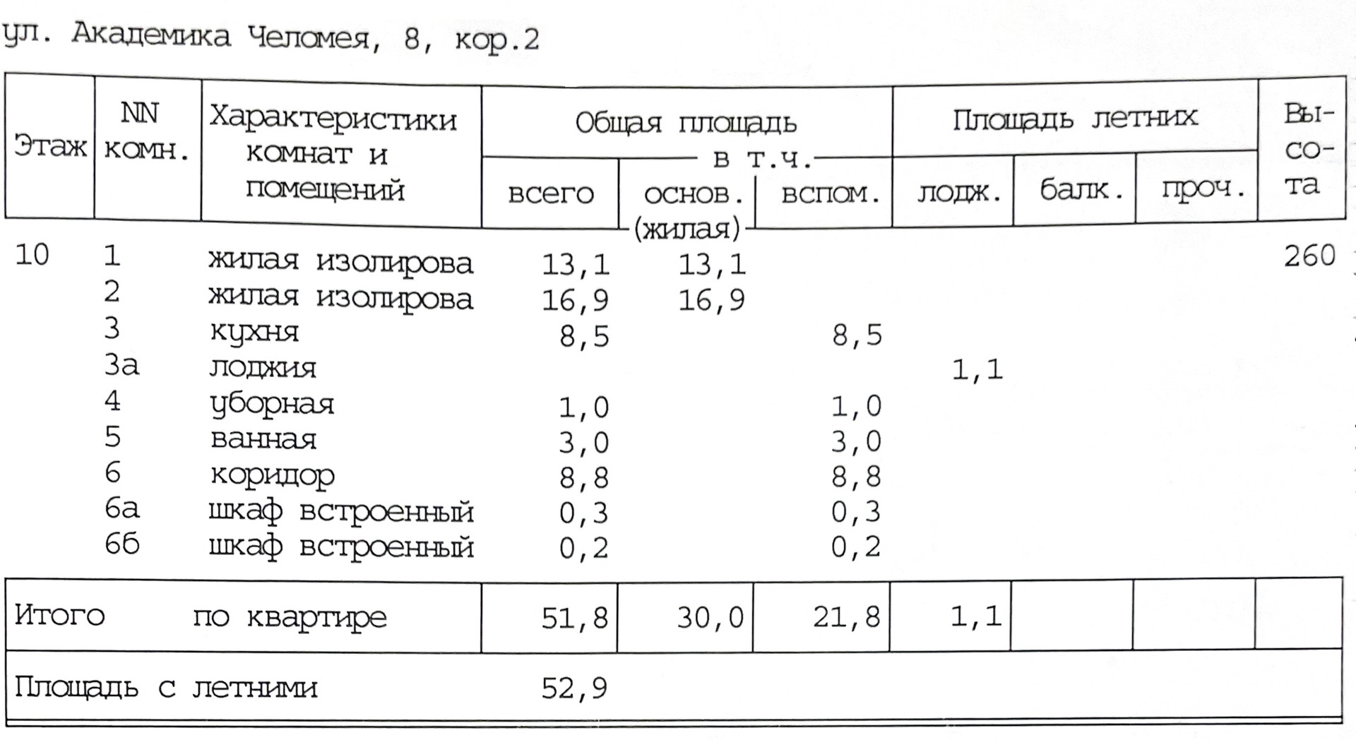 Общая площадь 51.8 м2