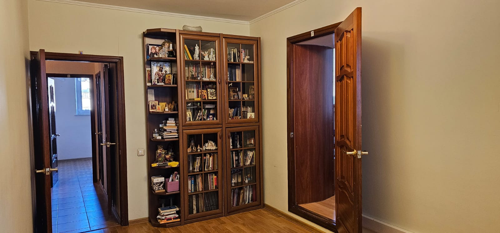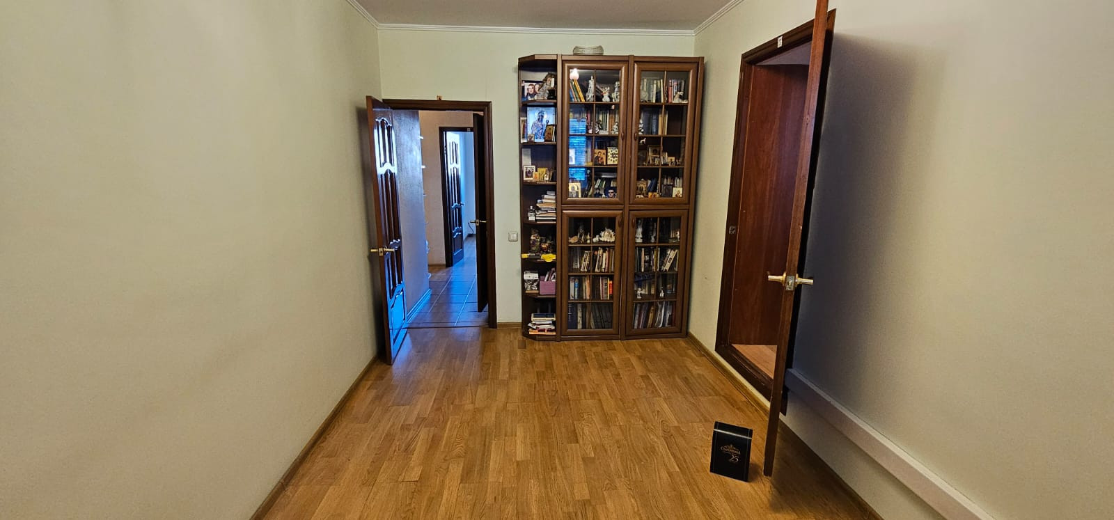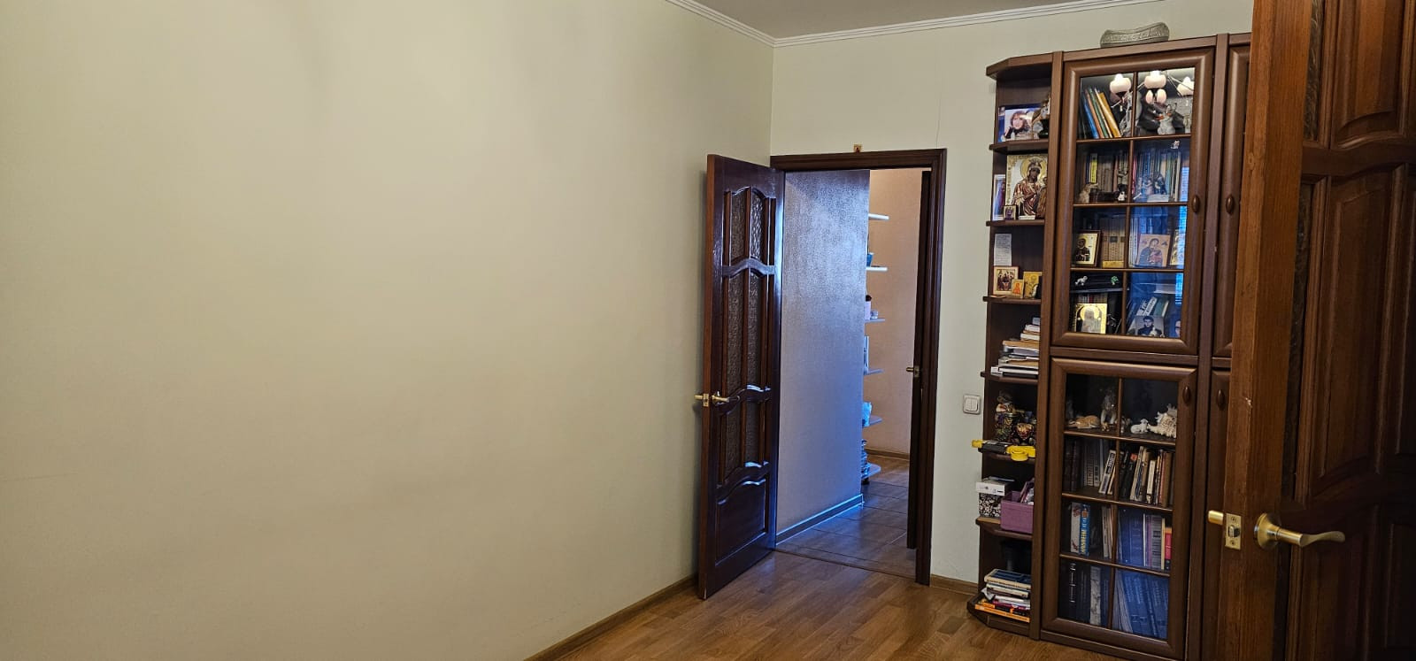 Интересная планировка квартиры: так как квартира находится на стыке дома, то в одной из комнат имеется еще одно помещение, оборудованное под кабинет с кладовой, сами комнаты изолированные (16-14 кв.м.) окнами выходят на разные стороны дома, просторная кухня - 8.1 кв.м.Санузел раздельный с душевой кабиной. Застеклённый балкон. На окнах стеклопакеты. Пол - ламинат и плитка. Кондиционер в комнате и на кухне. В квартире идеально выровнены стены под покраску, пол и потолок, заменены все коммуникации, электропроводка.