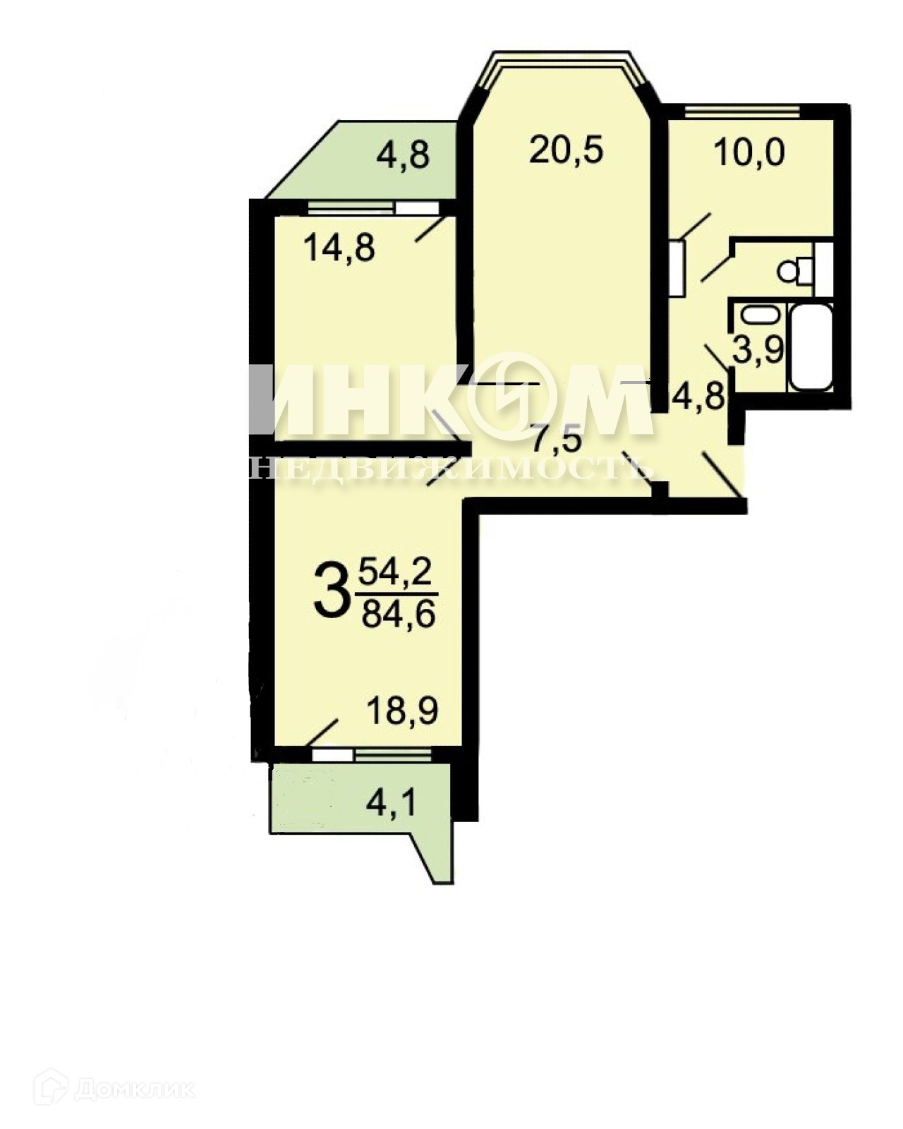 Жилая площадь 54.2 м2