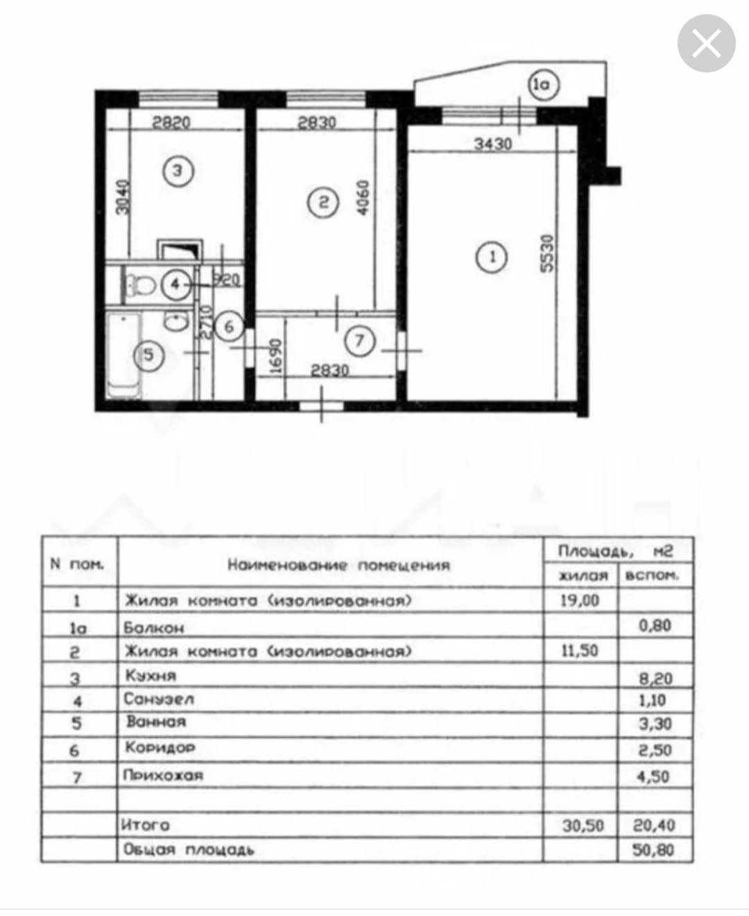 Общая площадь 50.9 м2