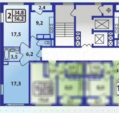 Общая площадь 54.4 м2