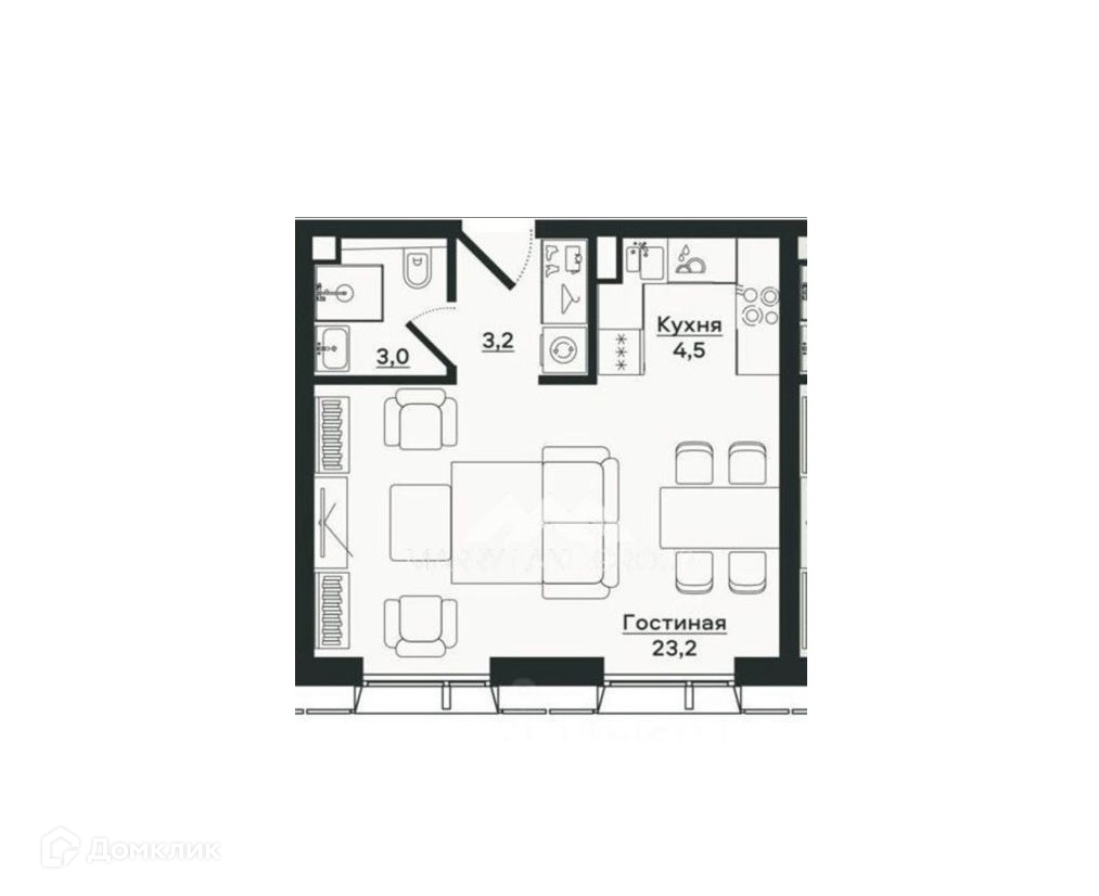 Общая площадь 34 м2