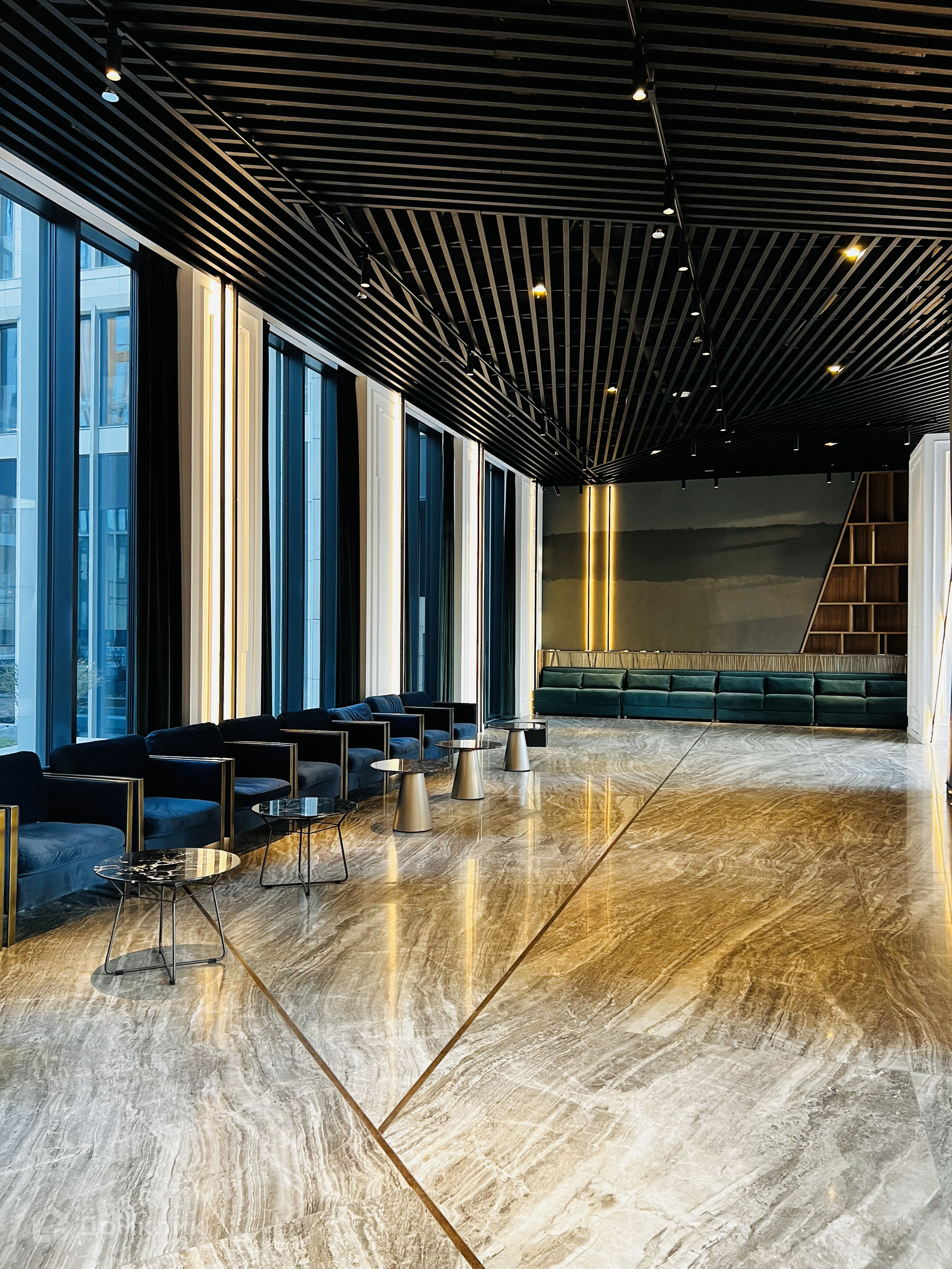 Просторный подземный паркинг, оборудованный системами подкачки шин и зарядкой для электромобилей. Современные инженерные системы.