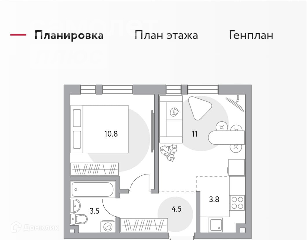 Общая площадь 42 м2