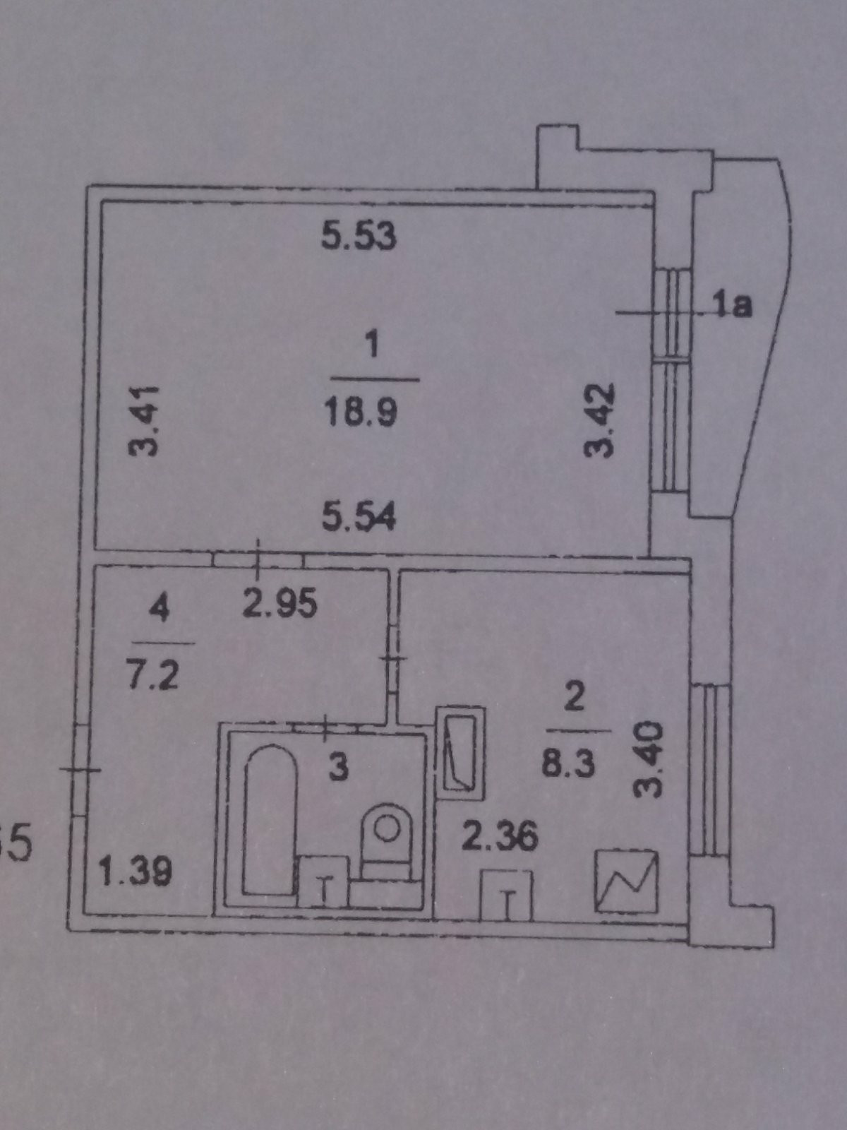 Общая площадь 37.7 м2