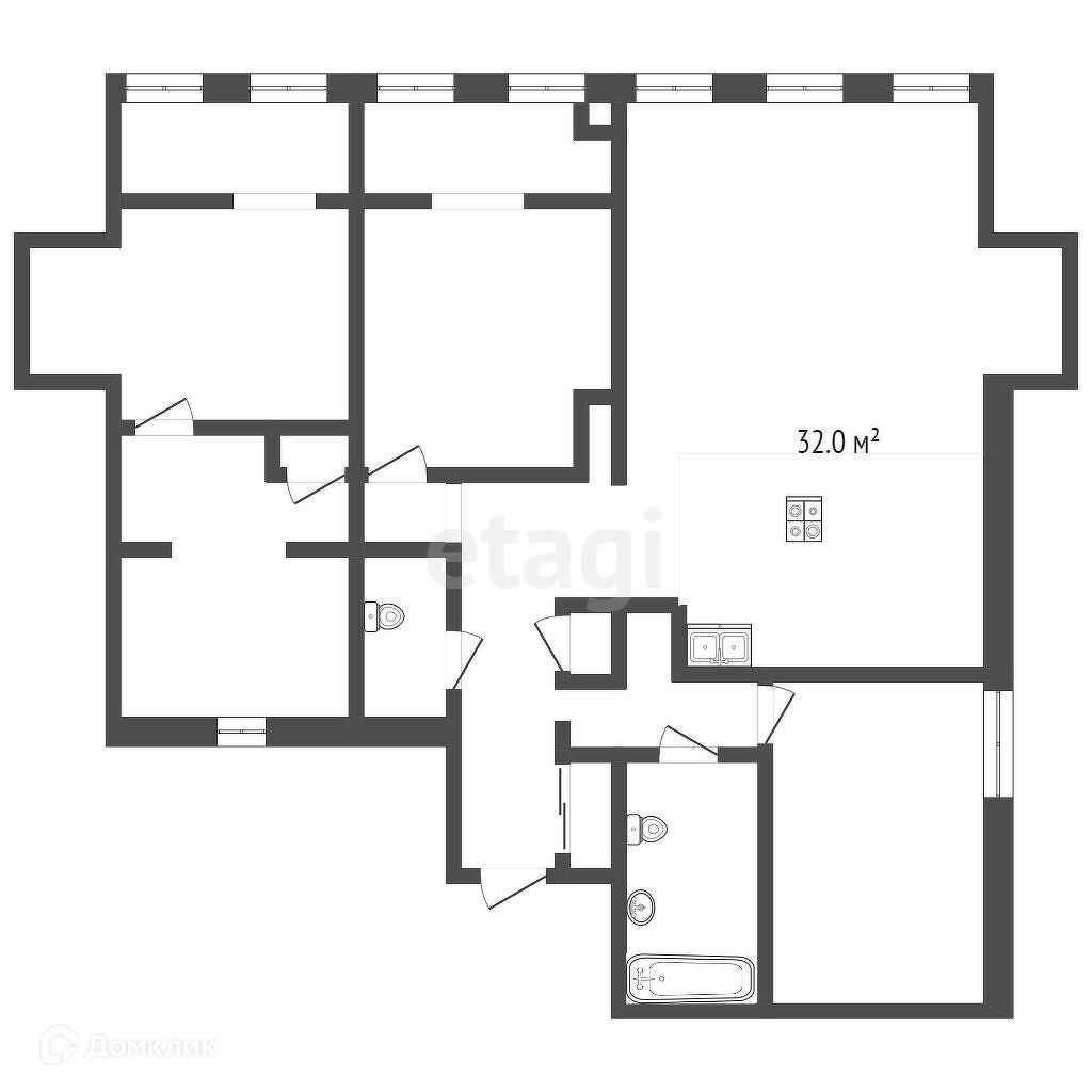 В данной квартире сможете воплотить любые дизайнерские решения.