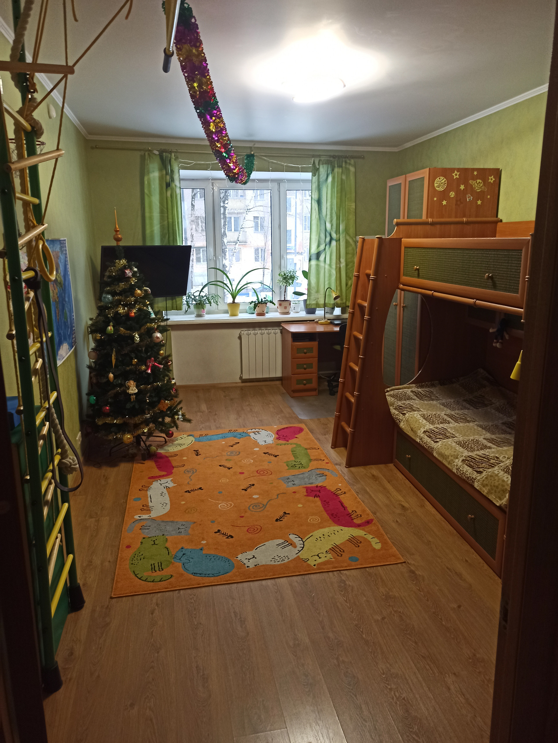 Общая площадь 54,1 м2, изолированные комнаты, окна на обе стороны (Ю-В и С-З), 18,1 м2 и 13,8 м2. Кухня 10,1 м2.