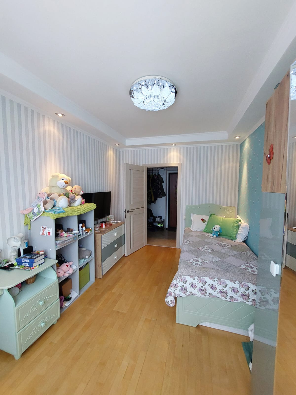 В хорошем состоянии продается двухкомнатная квартира, пластиковые стеклопакеты, застекленный балкон, разноуровневое освещение, просторный совмещенный санузел,полы плитка+ паркетная доска, кухня с экрерным окном.