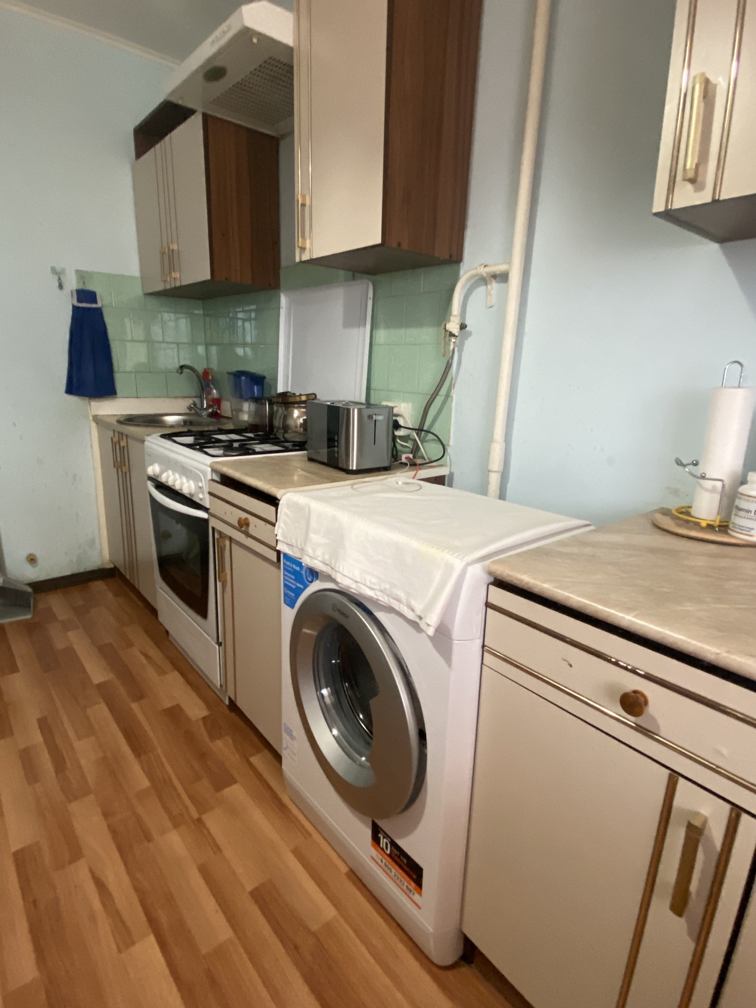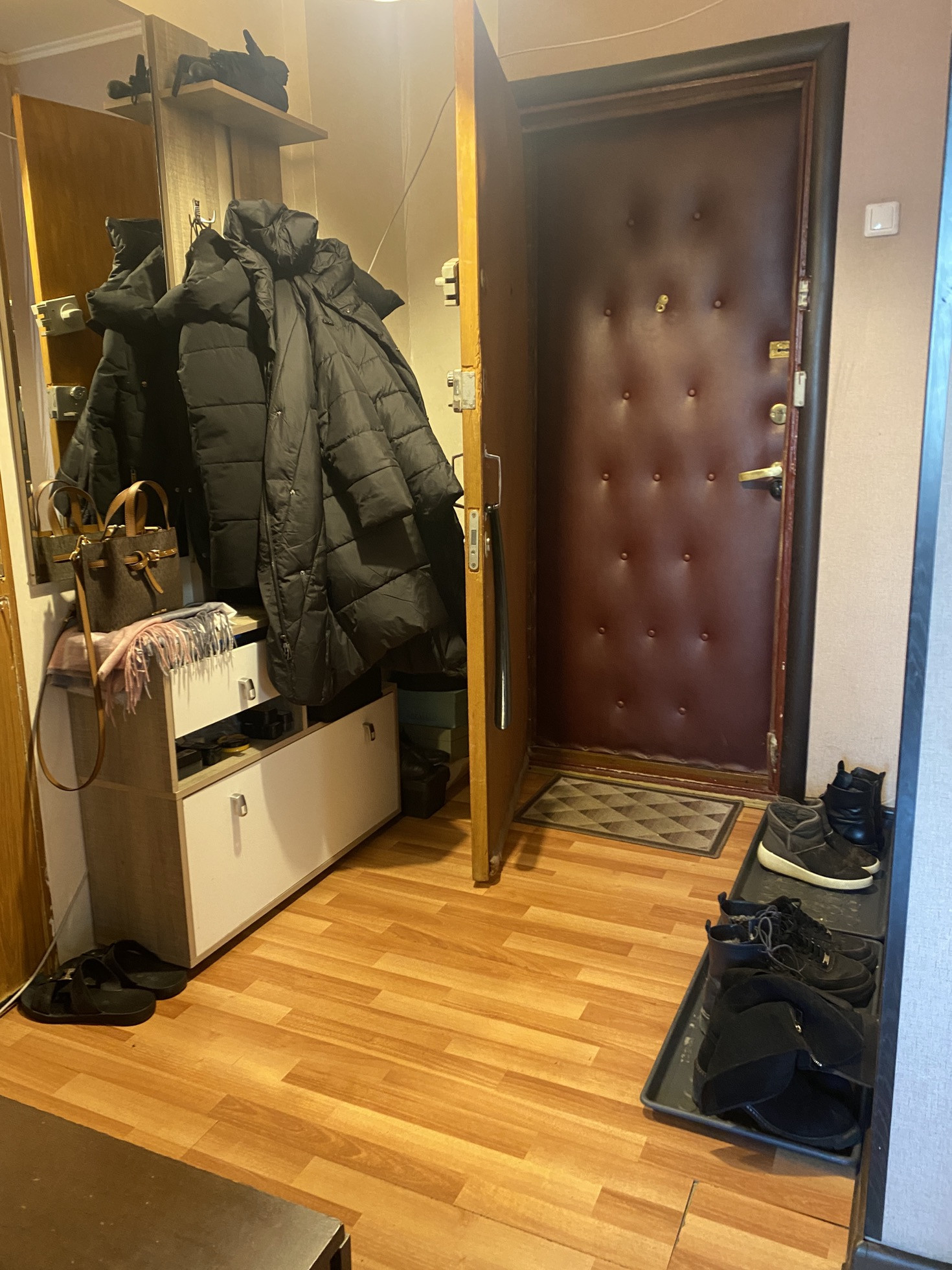 Кухня 9,4 м2. Застеклённые лоджия и балкон. Санузел раздельный. Просторный коридор 2,7 м2 с встроенным шкафом.