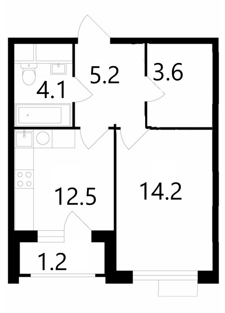 Жилая площадь 14.2 м2