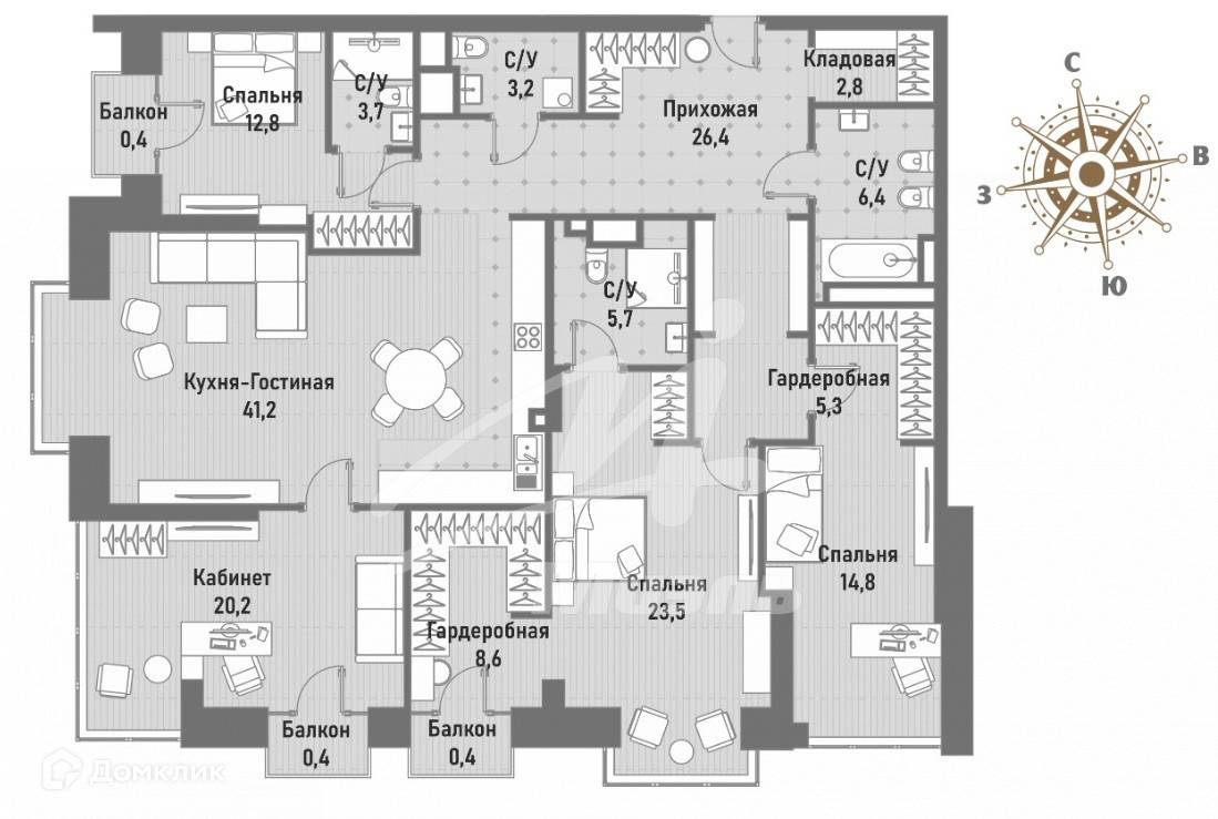 Арт. 57695791 Льготная субсидированная ипотека! Предлагаем к покупке 4 комнатная квартира, общей площадью 175.2 квадратных метров на 5-ом этаже Жилого комплекса премиум класса «Ренессанс», сочетающего в себе – практичность, функциональность, эстетику и прекрасный вкус архитектора, удобное расположение и наличие необходимой инфраструктуры, престиж и респектабельность. Кухня-гостиная -41.2 кв.м., спальня с выходом на застекленный балкон -12.8 кв.м. со своим санузлом и гардеробной комнатой, Мастер – спальня – 23.5 кв.м. с выходом на застекленный балкон, со своим санузлом – 5.7 кв.м., гардеробной комнатой – 8.6 кв.м., кабинет с выходом на застекленный балкон – 20.2 кв.м., спальня – 14.8 со своей гардеробной комнатой. Квартира без отделки, что позволяет зонировать пространство по своему усмотрению и вкусу.При разработке данного комплекса учли все аспекты, позволяющие сделать вашу жизнь комфортной.Функциональные планировки квартир, включают в себя просторные гостиные, а также предусматривают наличие мастер – спален с гардеробными комнатами и отдельными санузлами с ванной и душевыми кабинами, с высокими потолками 3.4 м.Панорамные оконные системы с первых лучей солнца и ночи, позволяют наслаждаться потрясающими видами.Собственная закрытая территория ЖК «Ренессанс» находится под круглосуточной охранной, на въезде установлен шлагбаум, круглосуточное видеонаблюдение ведется в паркингах, лобби, лифтах, лифтовых холлах. Из квартиры можно связаться по видеодомофону британской компании BAS-IP, вызов с домофона будет переадресован на ваш смартфон, все услуги консъерж – сервиса доступны в приложении смартфона. Двери в подъезды оборудованы системой СКУД, их можно открыть, как электронным ключом, так и со смартфона.Под каждым корпусом расположен подземный 2-х уровневый паркинг, имеется возможность зарядки электромобиля. В зоне подземного пространства устроены практичные келлеры площадью от 12-25 кв.м. – индивидуальные кладовые для хранения вещей.Премиальная отделка натуральным мрамором выполнена в едином стиле с лобби и общественными пространствами, а стильные вазоны с растениями и репродукции картин привносят в пространство нотки домашнего уюта