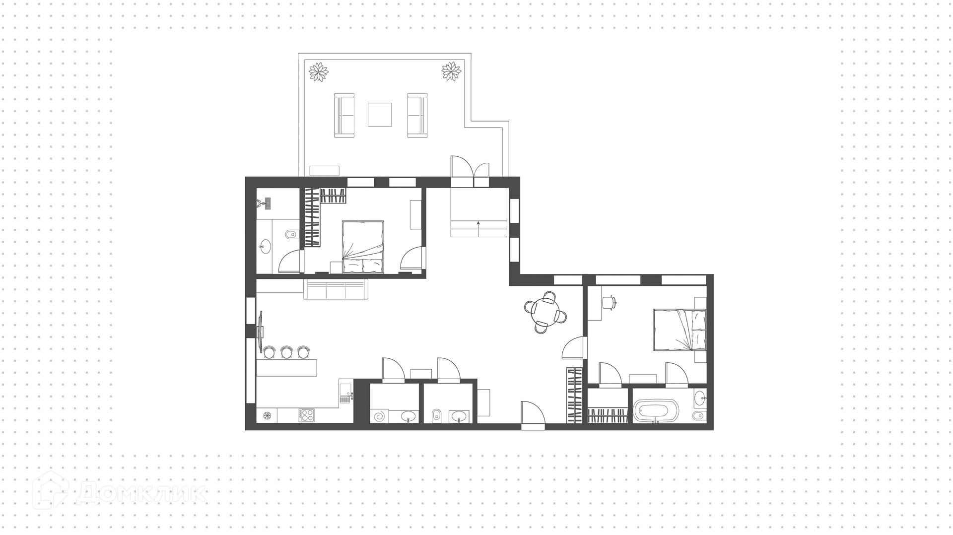 ID 240 719. Просторная квартира с 2-мя спальнями общей площадью 134 м² в комплексе премиум-класса «Садовые кварталы». Квартира без отделки расположена в корпусе 5.2 на 14-м этаже. Возможная планировка: кухня-гостиная, две спальни с собственными гардеробными и санузлами, гостевой санузел, постирочная, прихожая. Благодаря панорамным окнам пространство наполнено естественным светом, открываются виды город и территорию комплекса.
