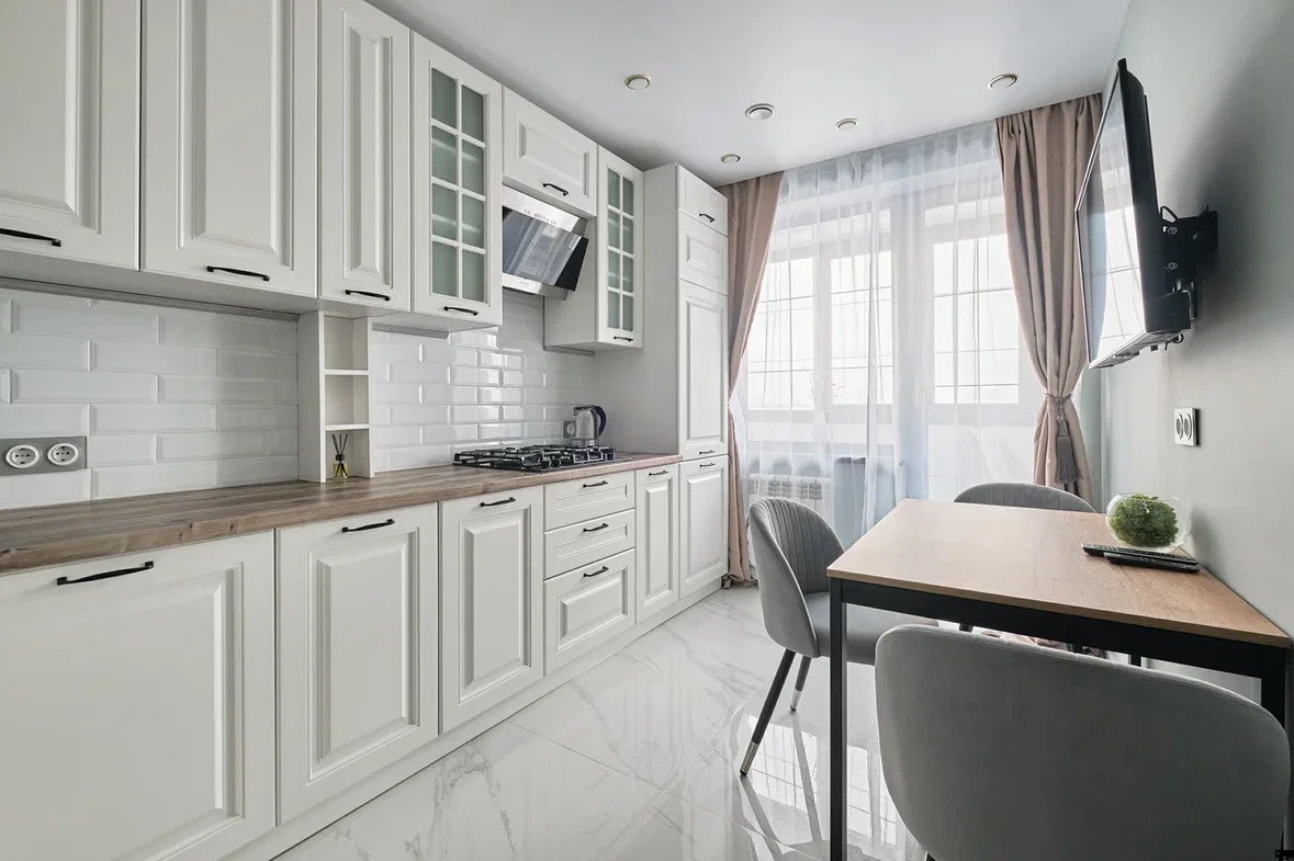 Кухня: пол керамогранит Испания, стены краска. Пол с подогревом.