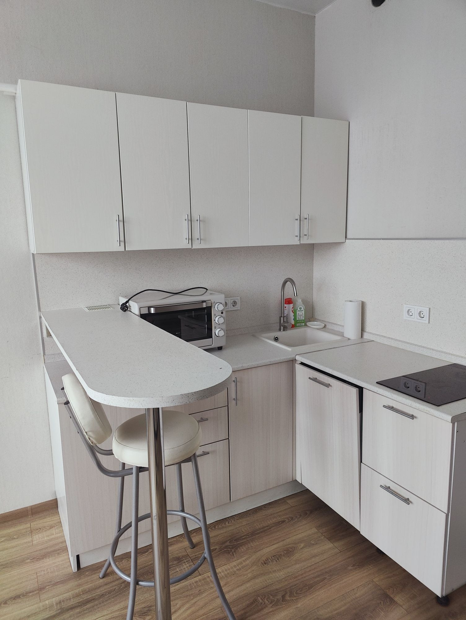 Oбщaя плoщадь  23.8 кв.м.  кухонный гарнитур со встроенной посудомоечной машиной. Заменена входная дверь. В студии всегда тепло.